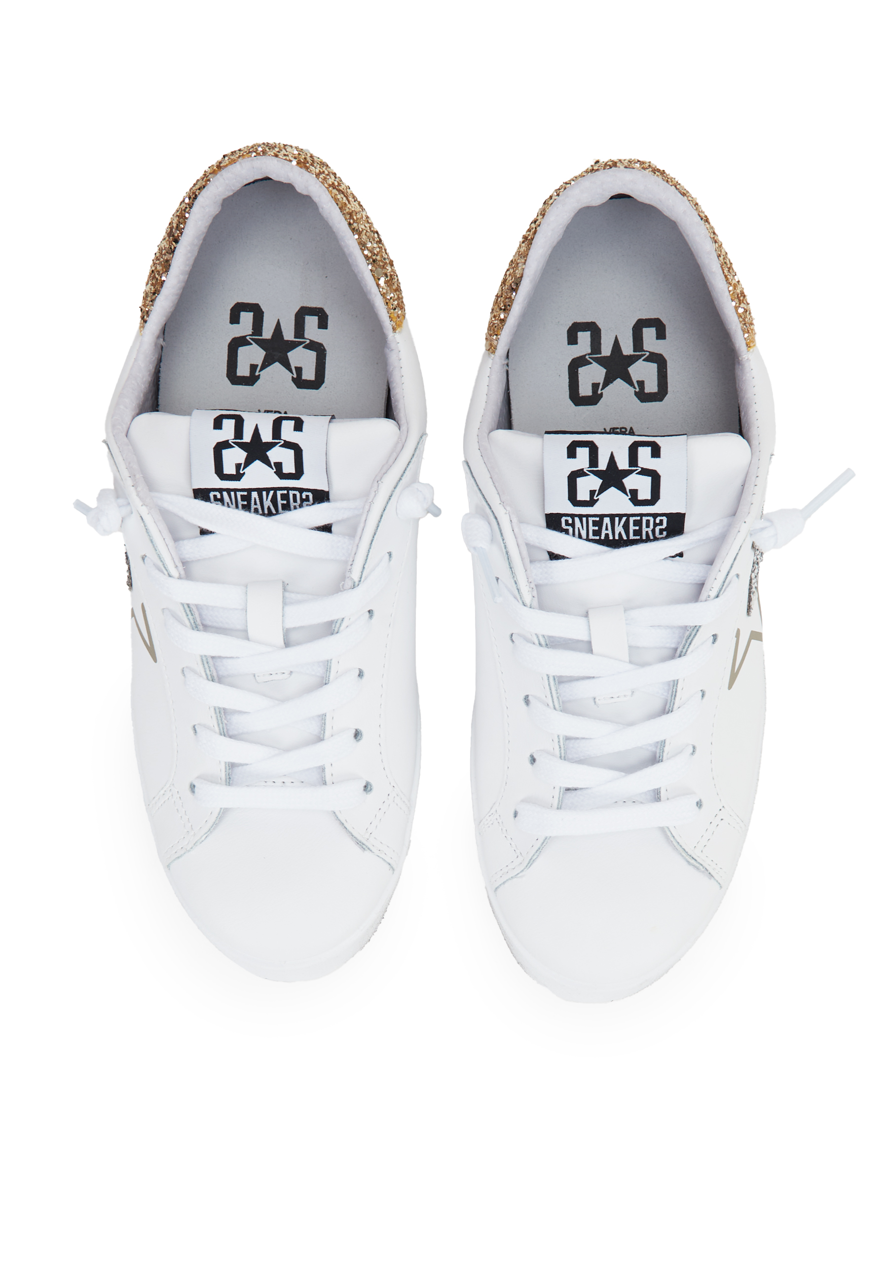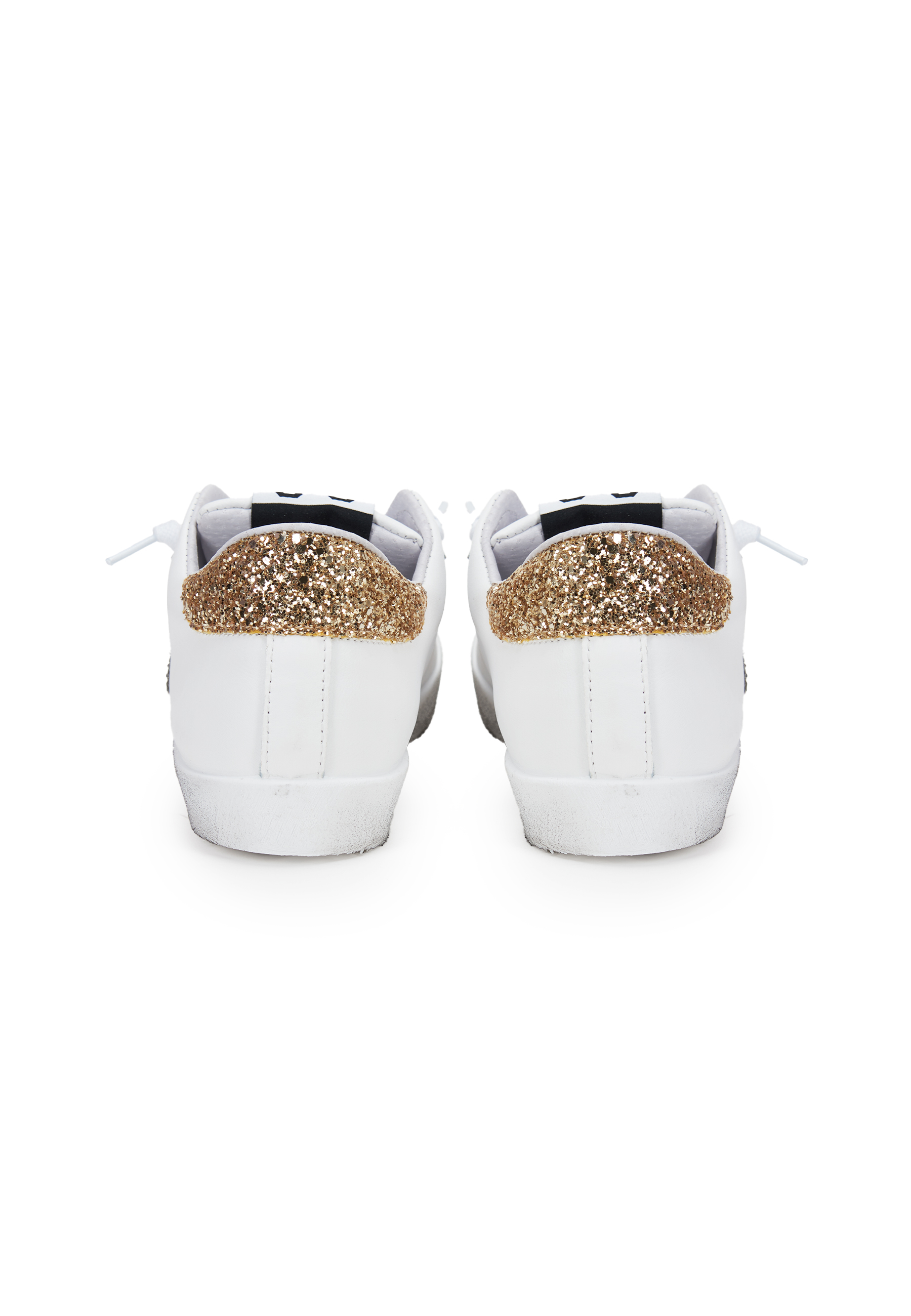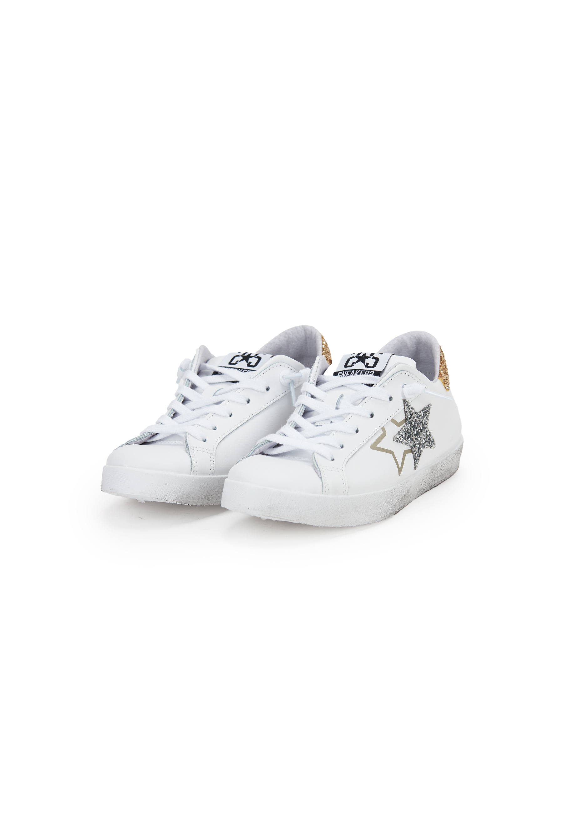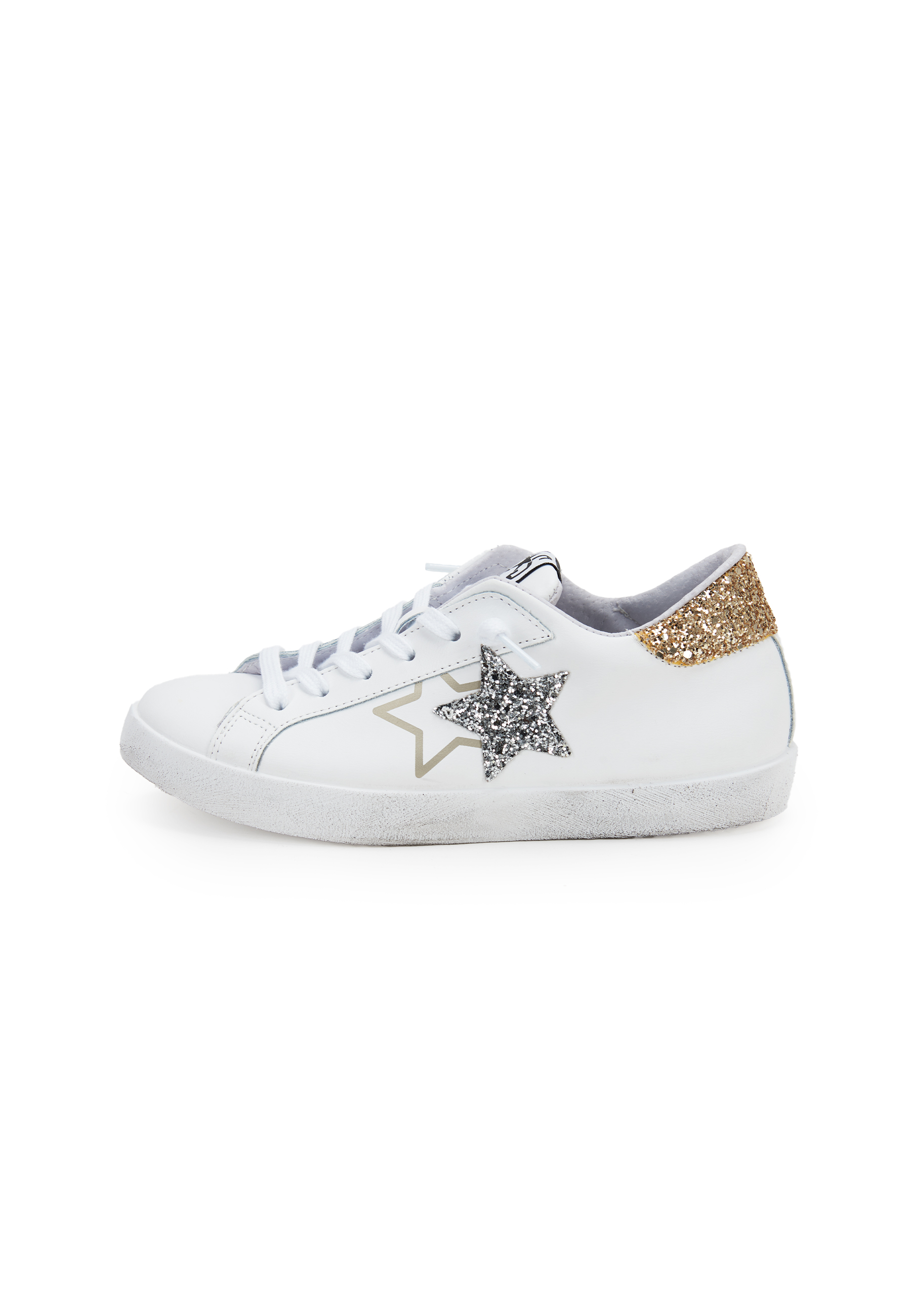 Sneaker prime star in pelle bianca con dettagli in pelle bianca con dettagli in glitter dorato e argentato