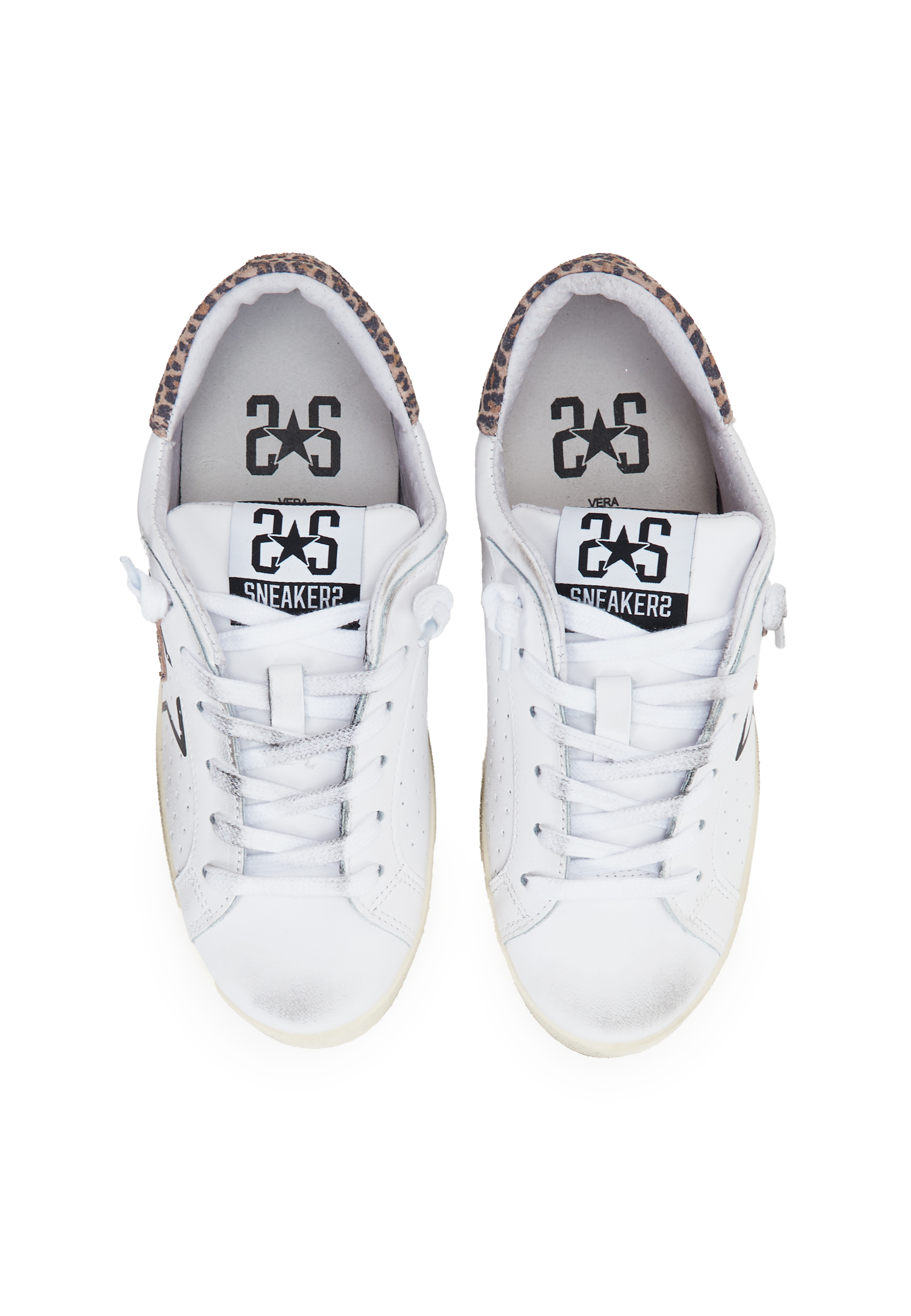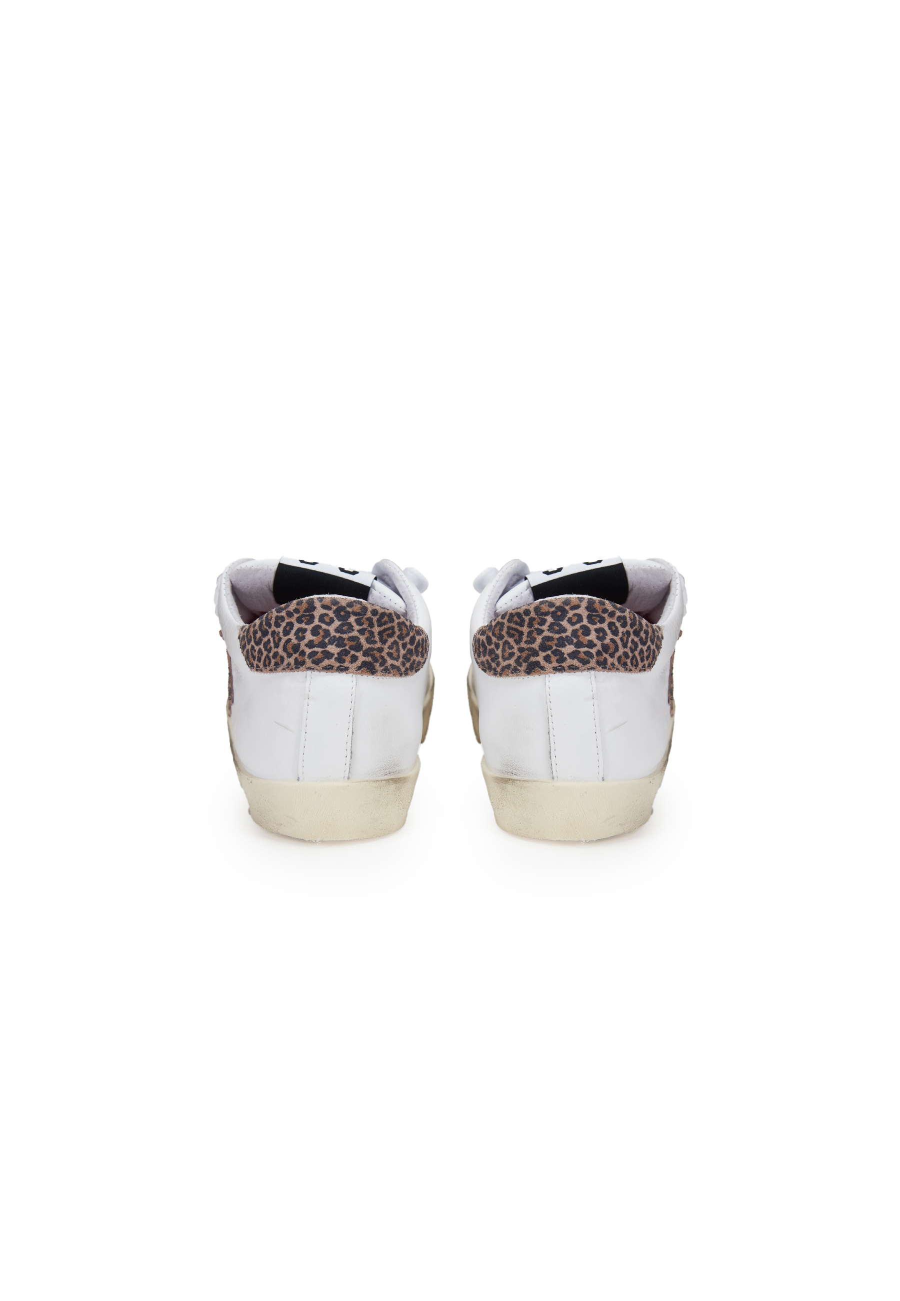 Sneaker prime star in pelle bianca con dettagli in pelle con dettagli in crosta leopardata ed effeto used