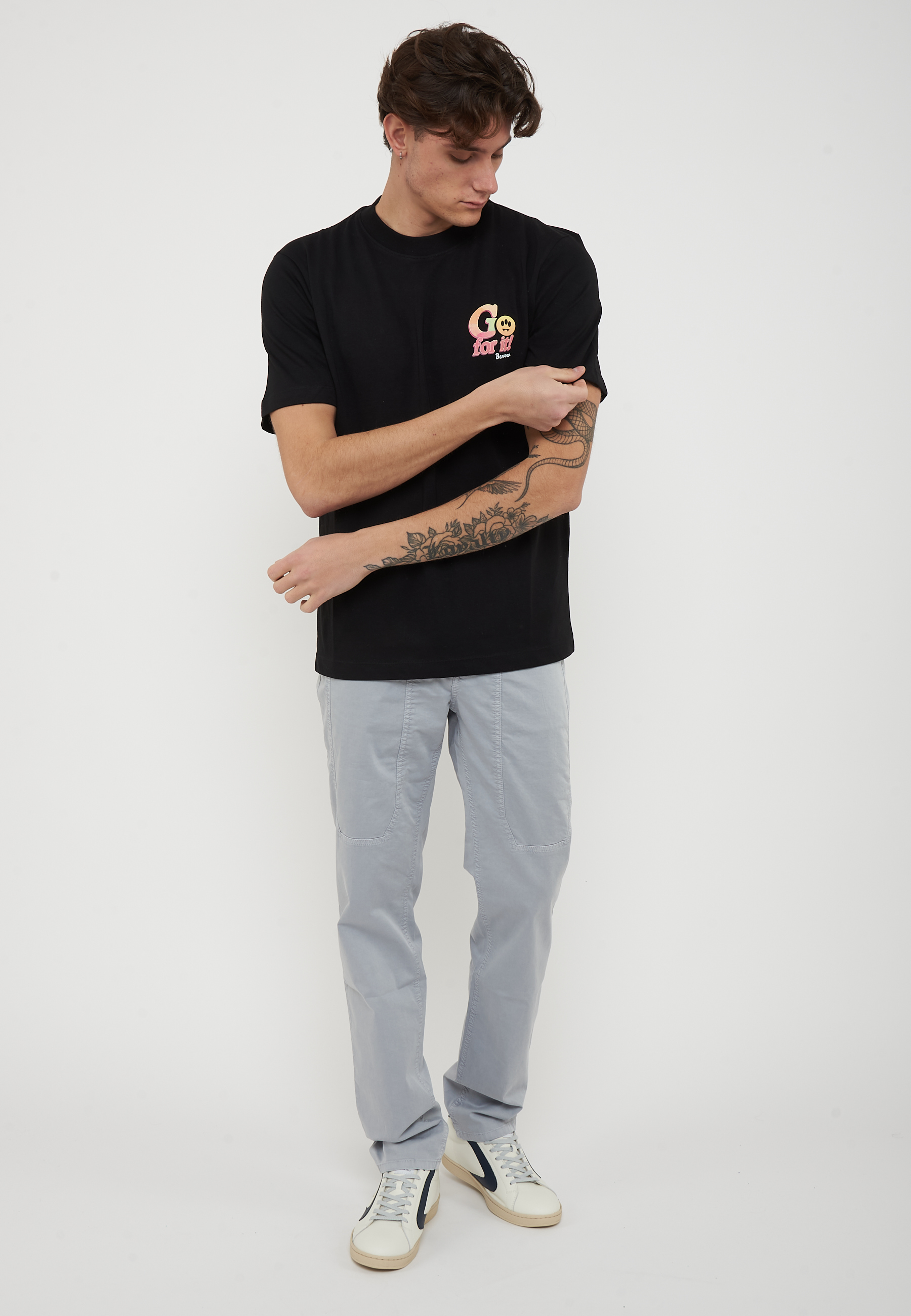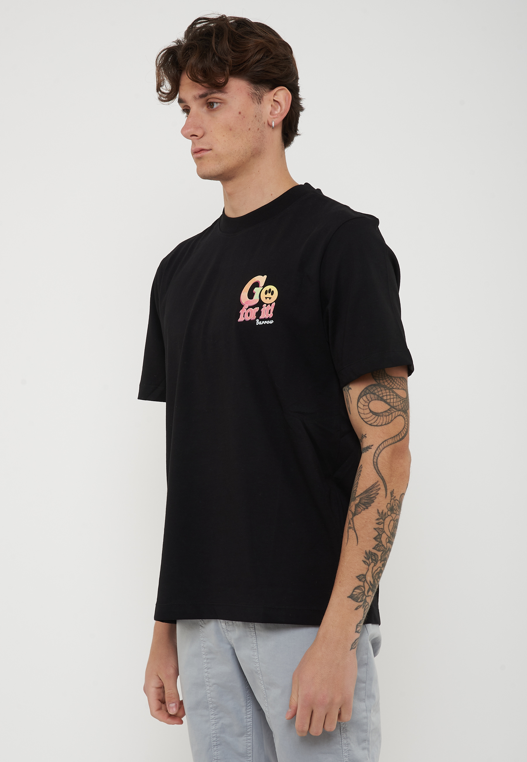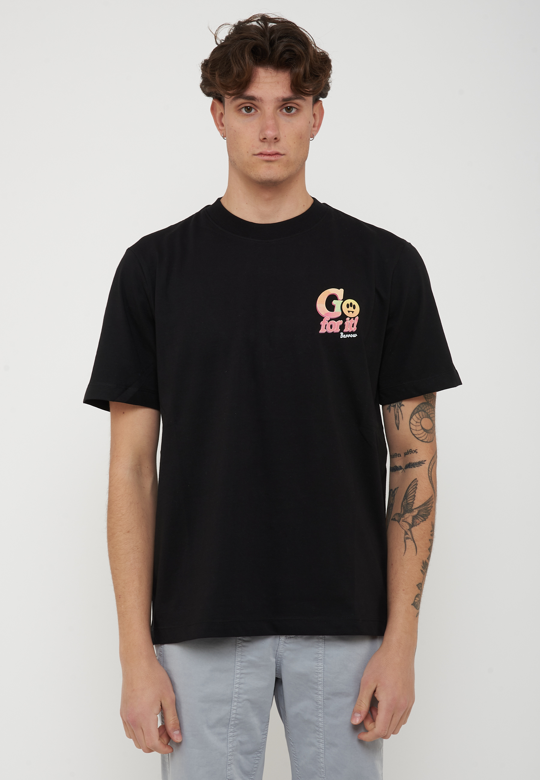 T-shirt in 100% cotone dal fit morbido con girocollo e maniche corte. Il fronte presenta una mini stampa Go for it! Barrow a contrasto applicata sul petto, che aggiunge un dettaglio grafico distintivo mantenendo uno stile pulito e contemporaneo.