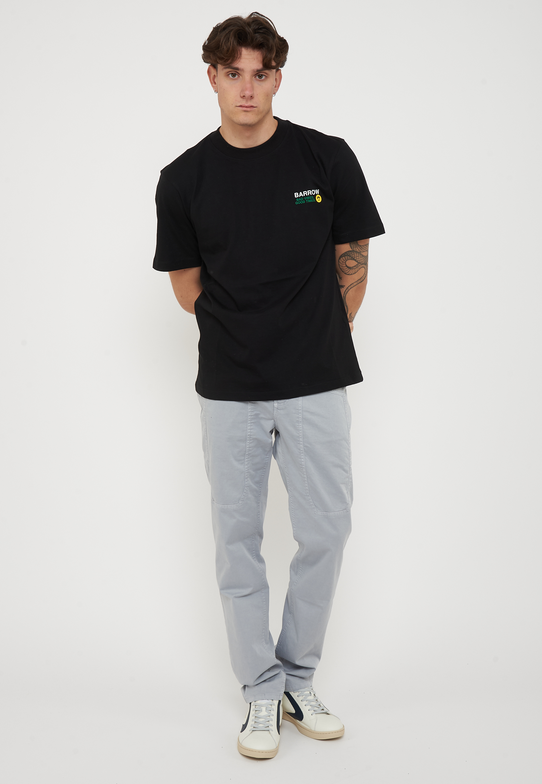 T-shirt in 100% cotone dal fit morbido con girocollo e maniche corte. Sul fronte mini stampa "Barrow".