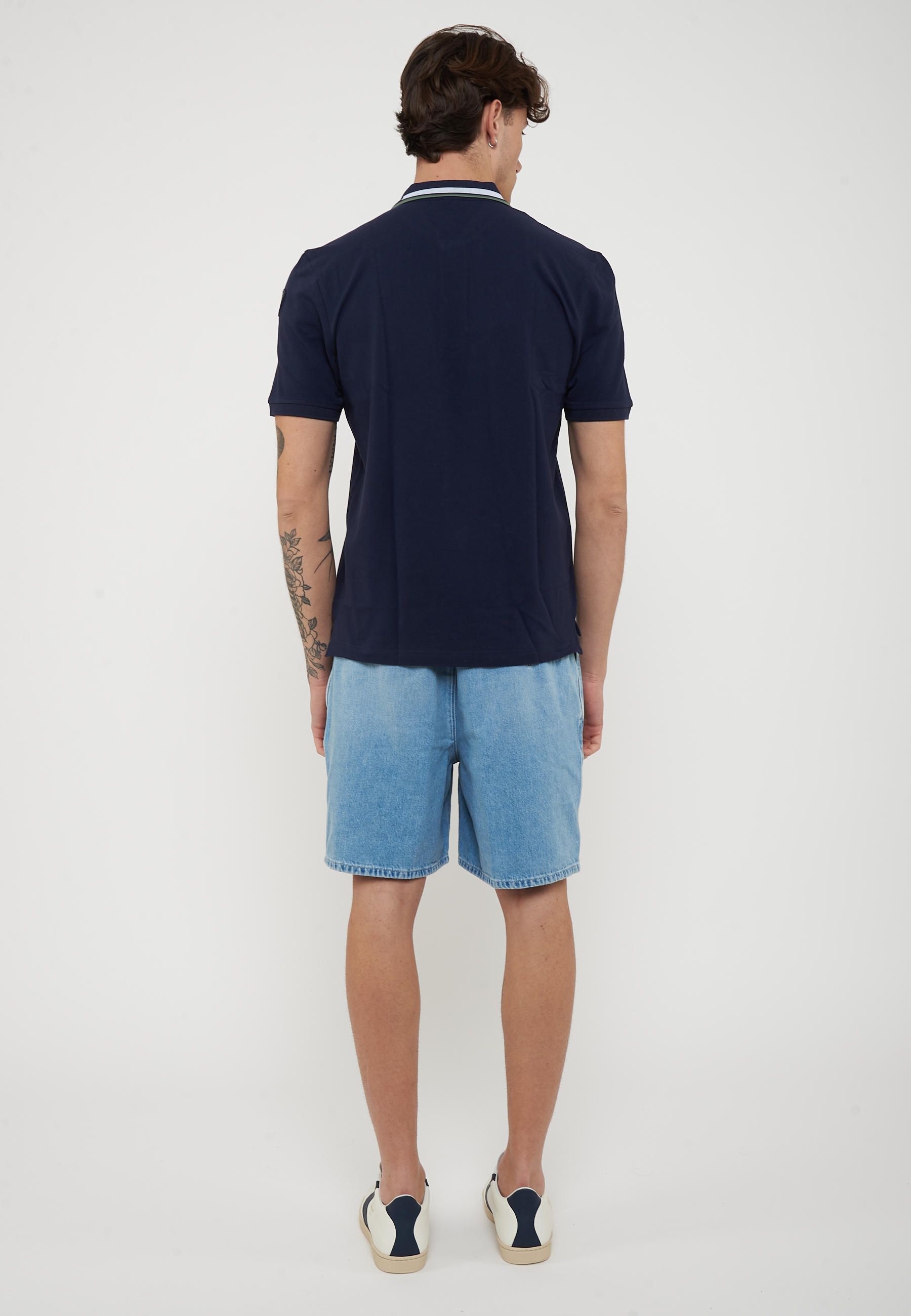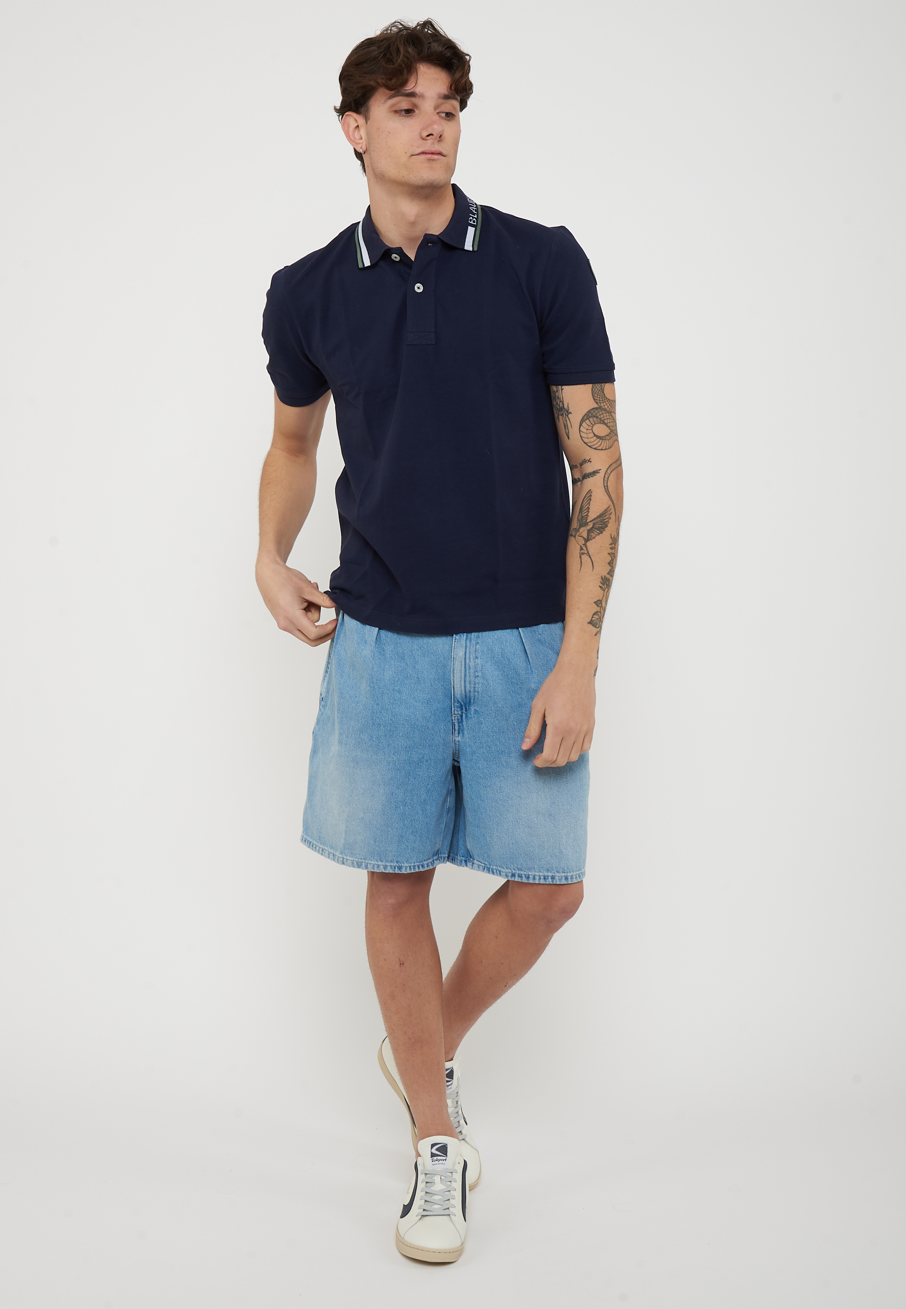 Polo con costina rigata in contrasto colore sul colletto. Logo ricamo in contrasto colore sul colletto.