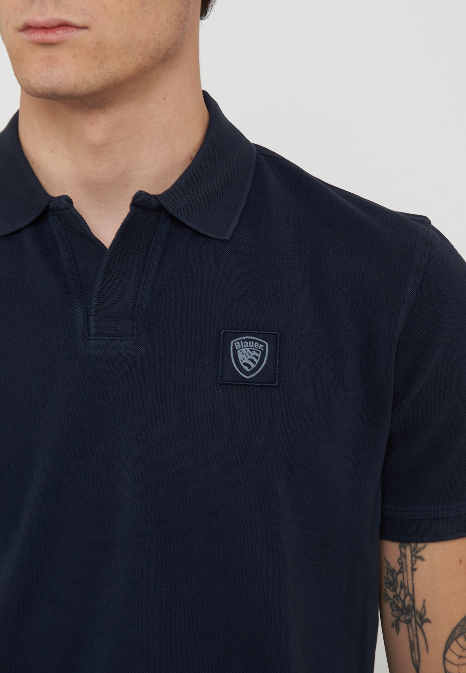 Polo con colletto a camicia scollata sul davanti. Tessuto piquet.