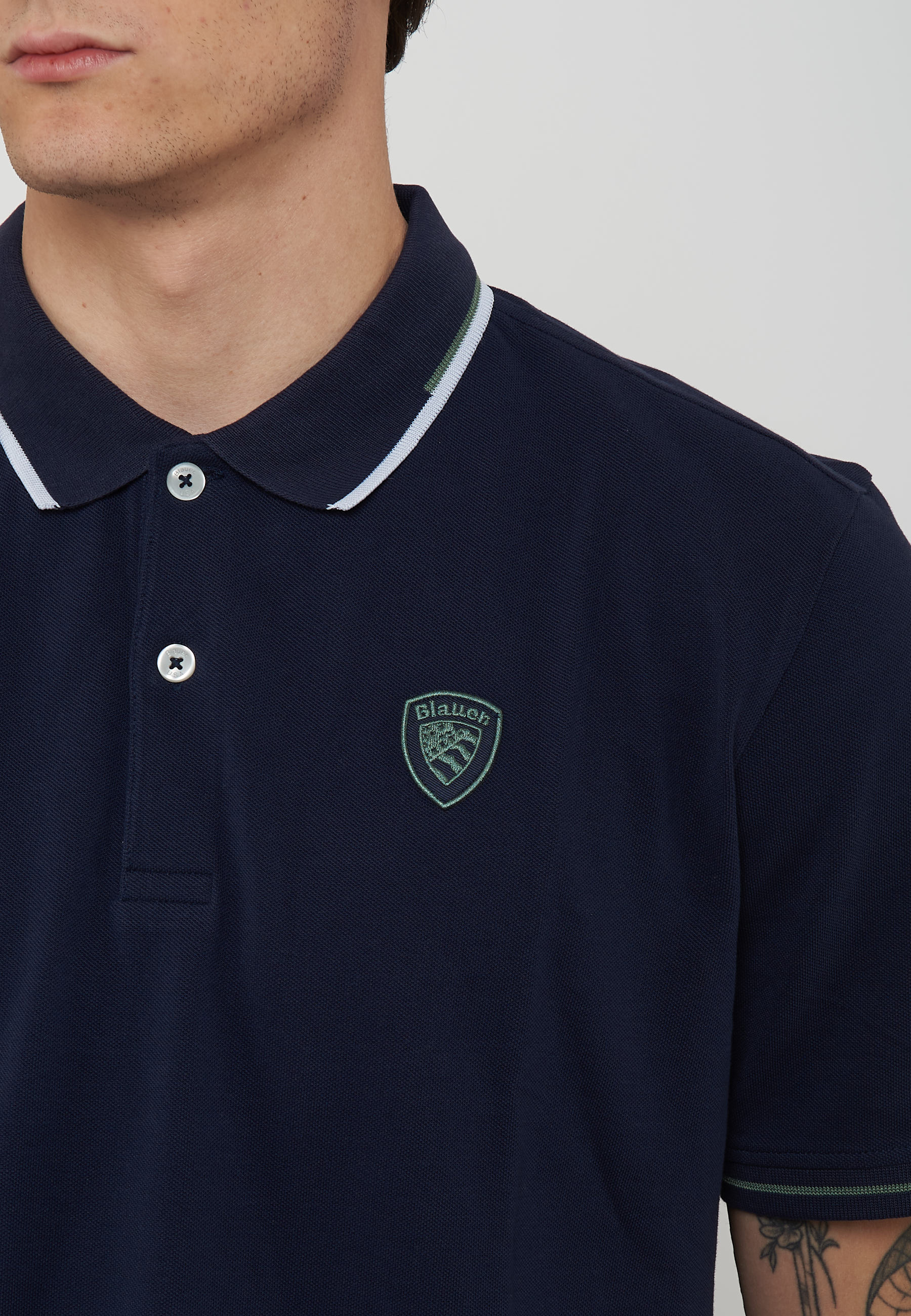 Polo in piquet di cotone liscia e fresca. Colletto classico in costina con riga a contrasto