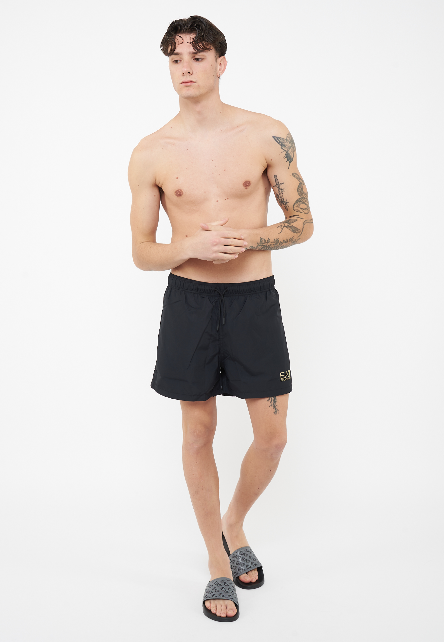 Costume da bagno da uomo pensato per il nuoto indoor e outdoor. Un modello che garantisce la massima libertà di movimento e comfort, personalizzato con logo EA7 a contrasto.