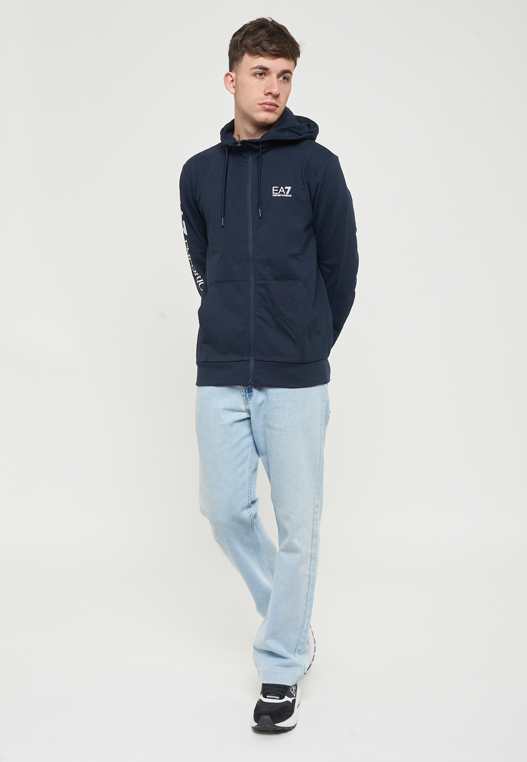 Felpa con cappuccio dalla linea pulita ed essenziale e dalla vestibilità regular. Realizzata in morbido cotone, è dotata di chiusura con zip, una pratica tasca frontale a marsupio ed è caratterizzata dal logo a contrasto sulla manica e dai profili in maglia elasticizzata. Perfetta per completare i tuoi look sportivi se abbinata a un paio di joggers di collezione.
