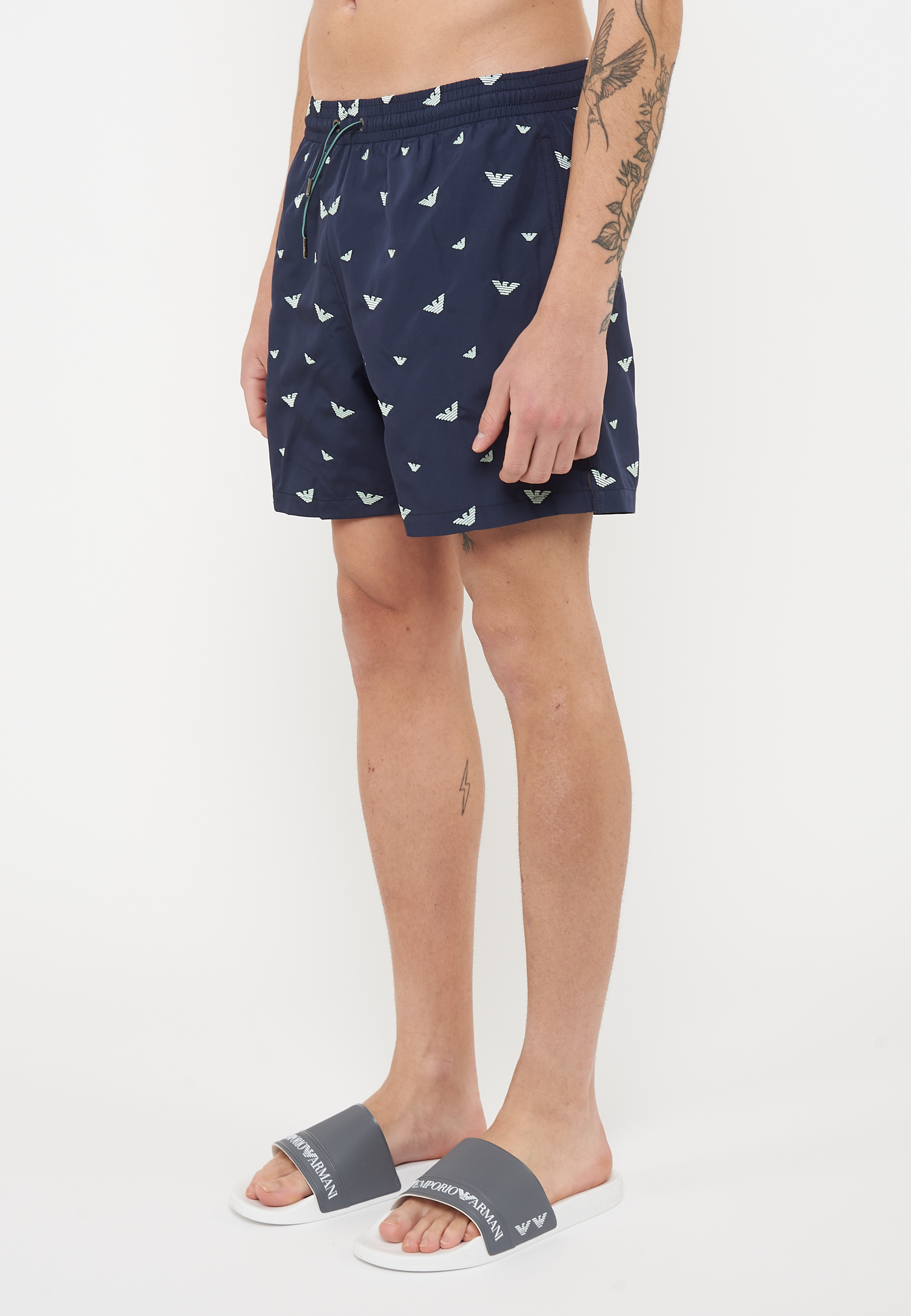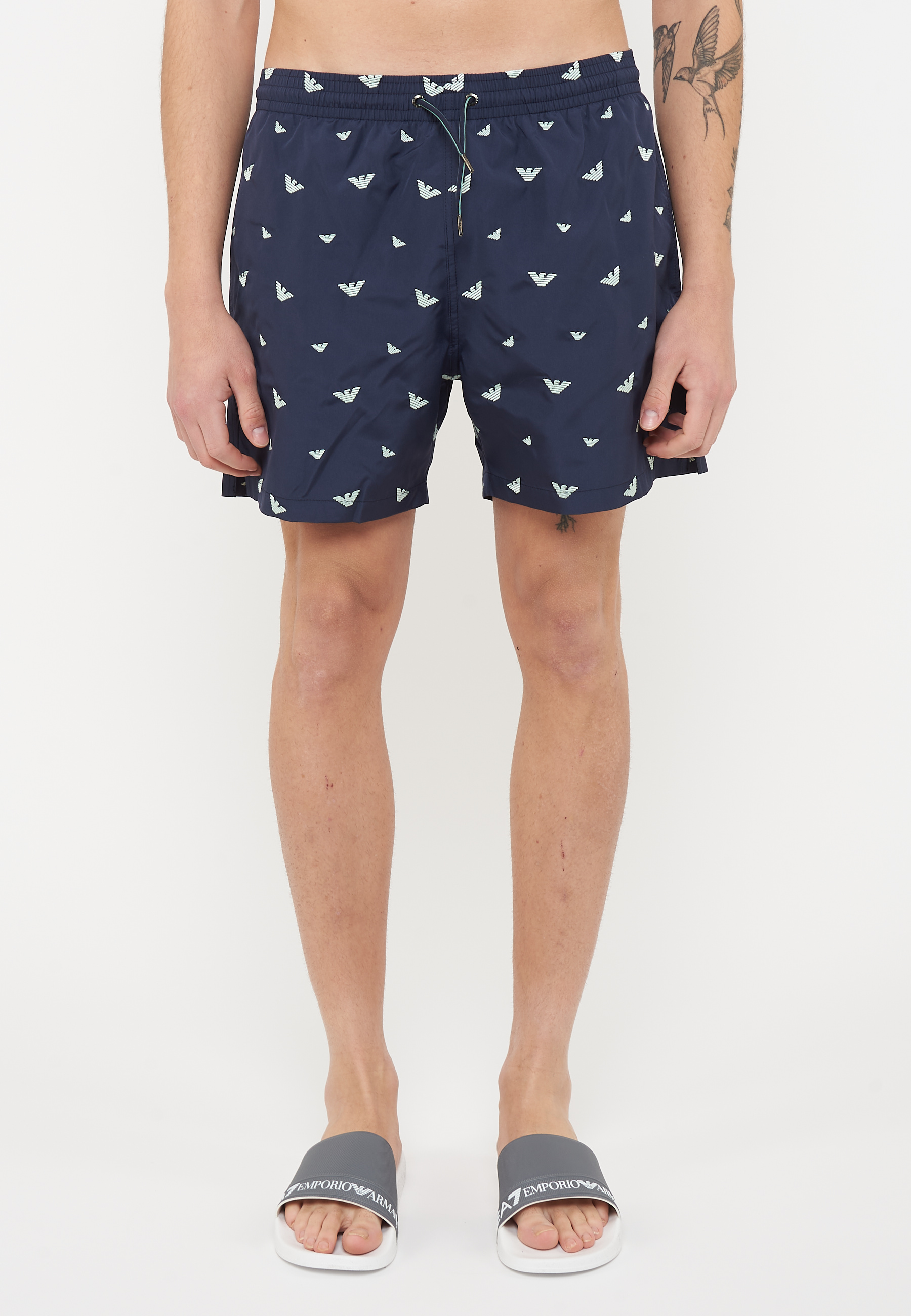 Costume shorts ricamo micro eagle all over Blue Aqua