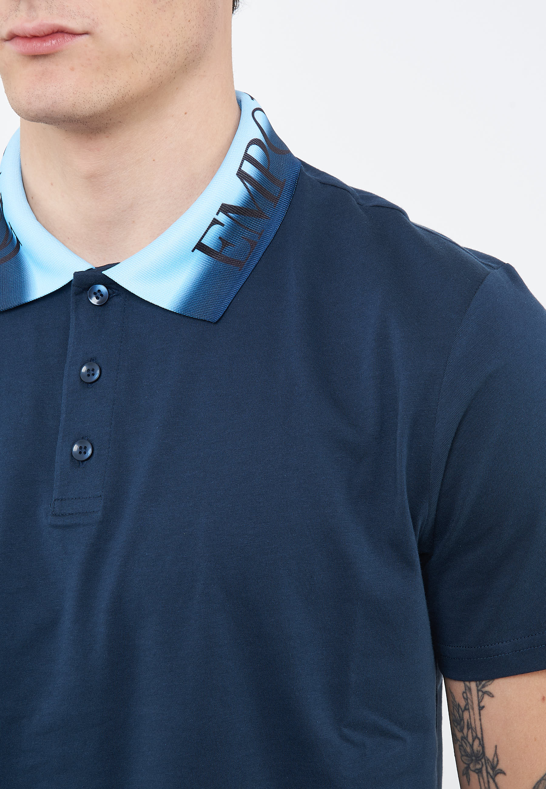 Polo con bordi fluo in cotone navy blue