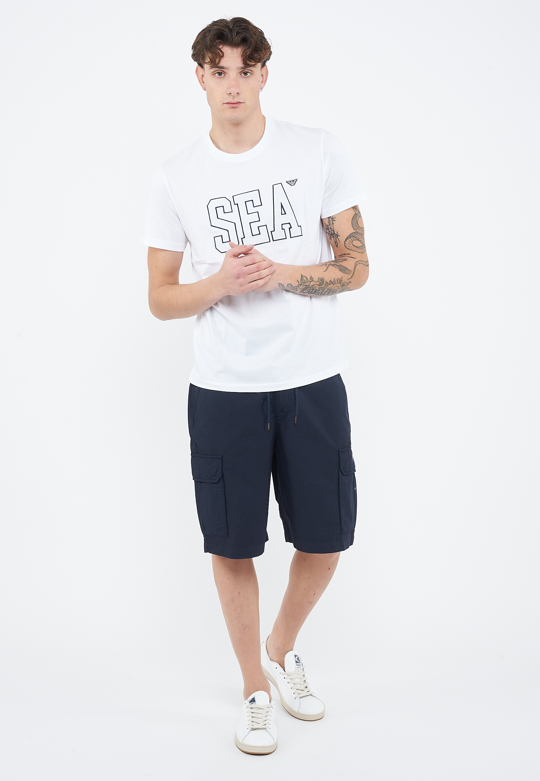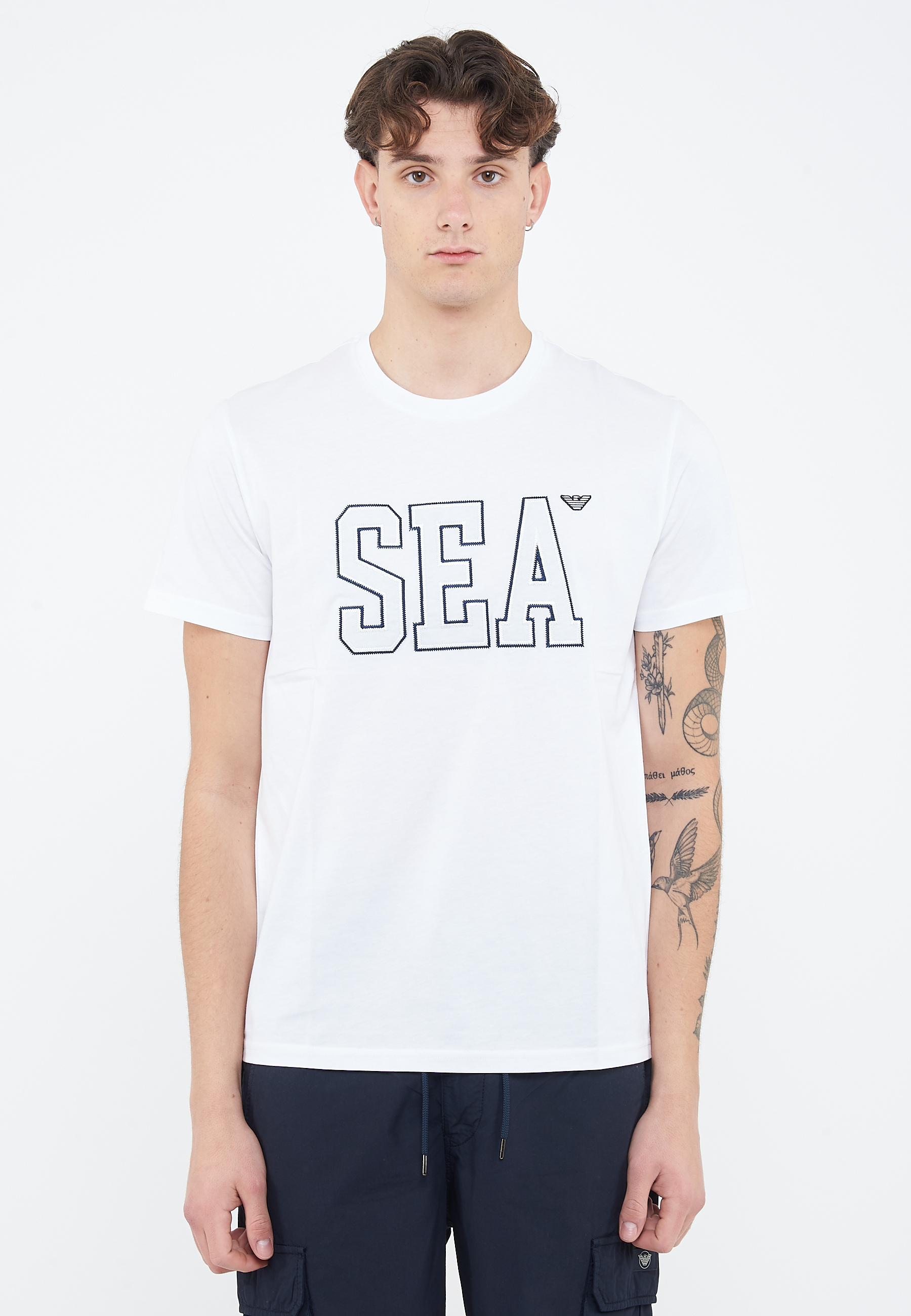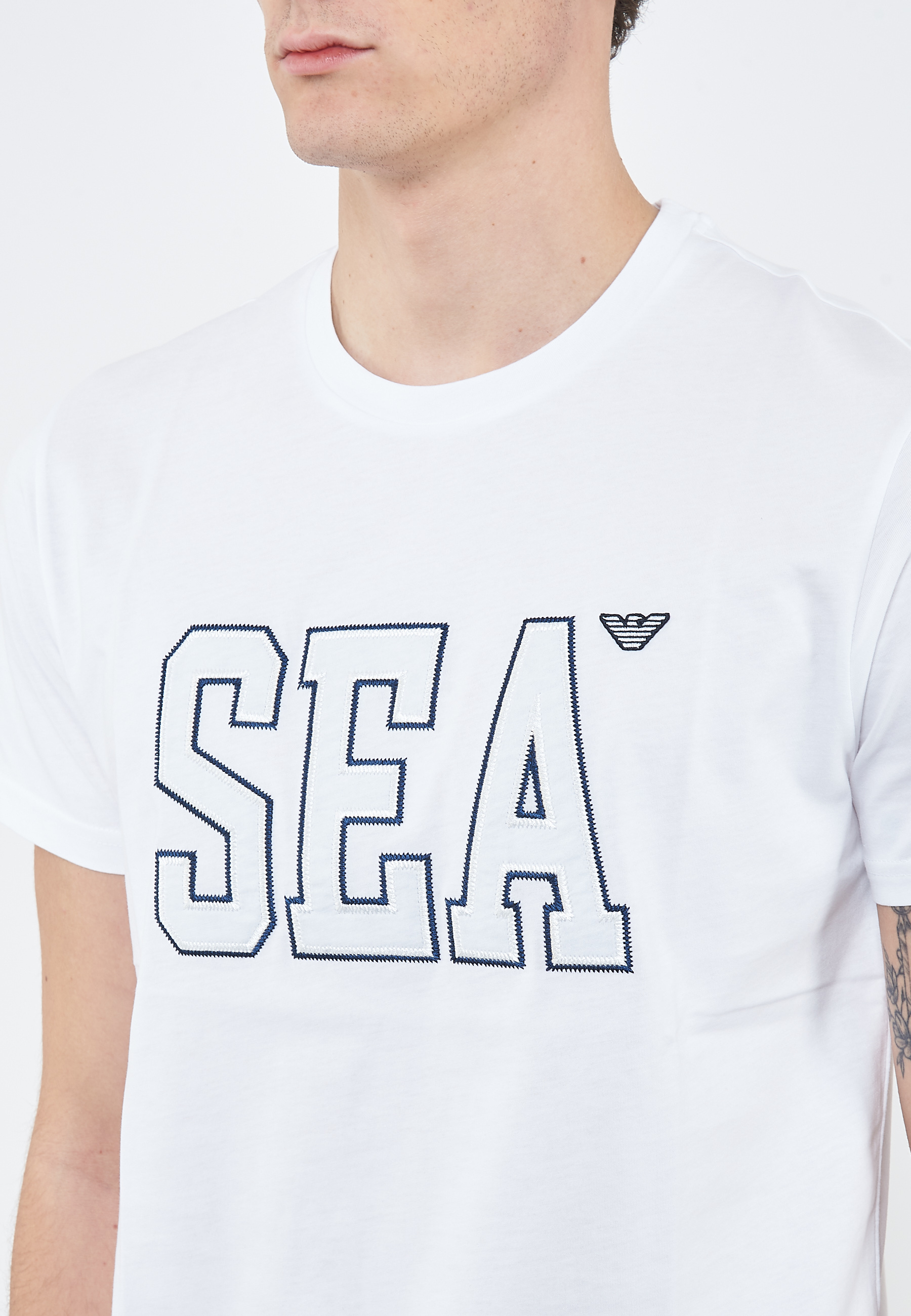 T-shirt beachwear in jersey ricamo Sea White