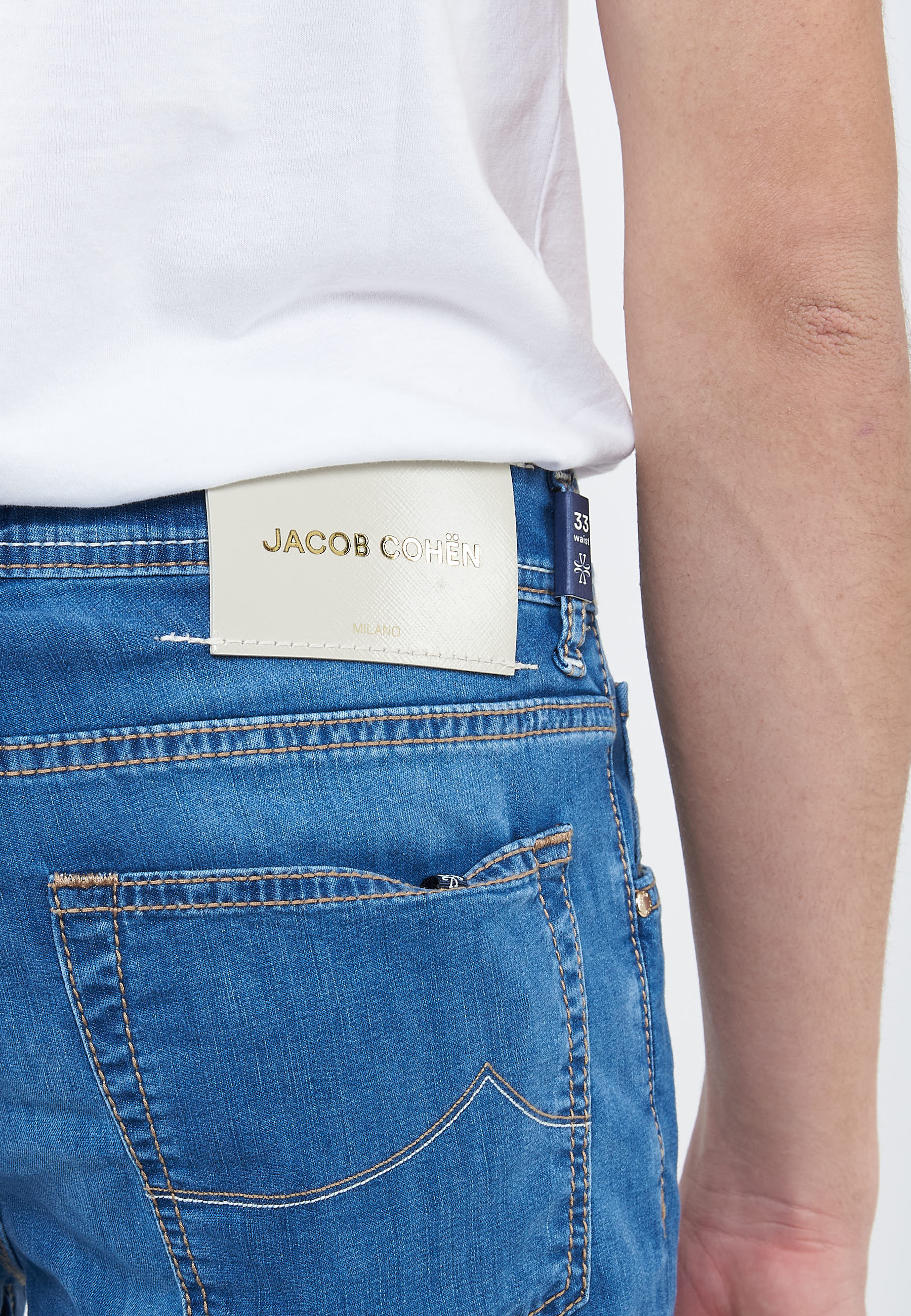 Jeans 5 tasche Nick in denim power stretch blu chiaro lavaggio vintage