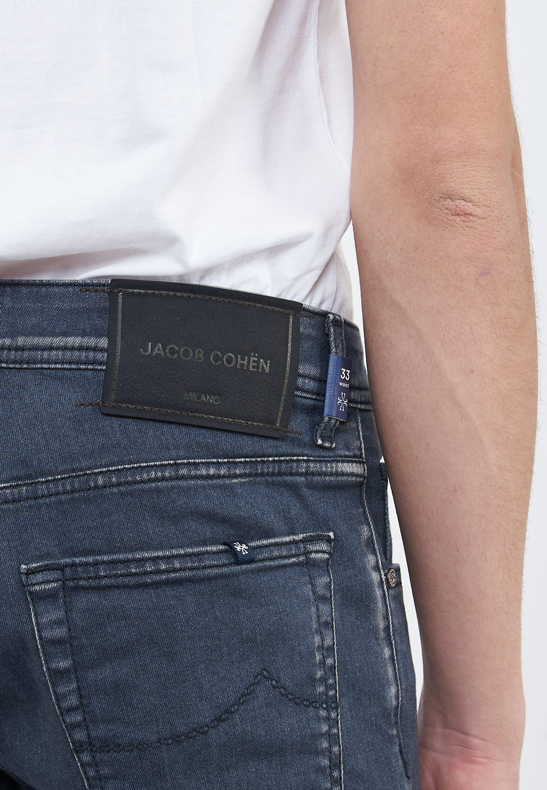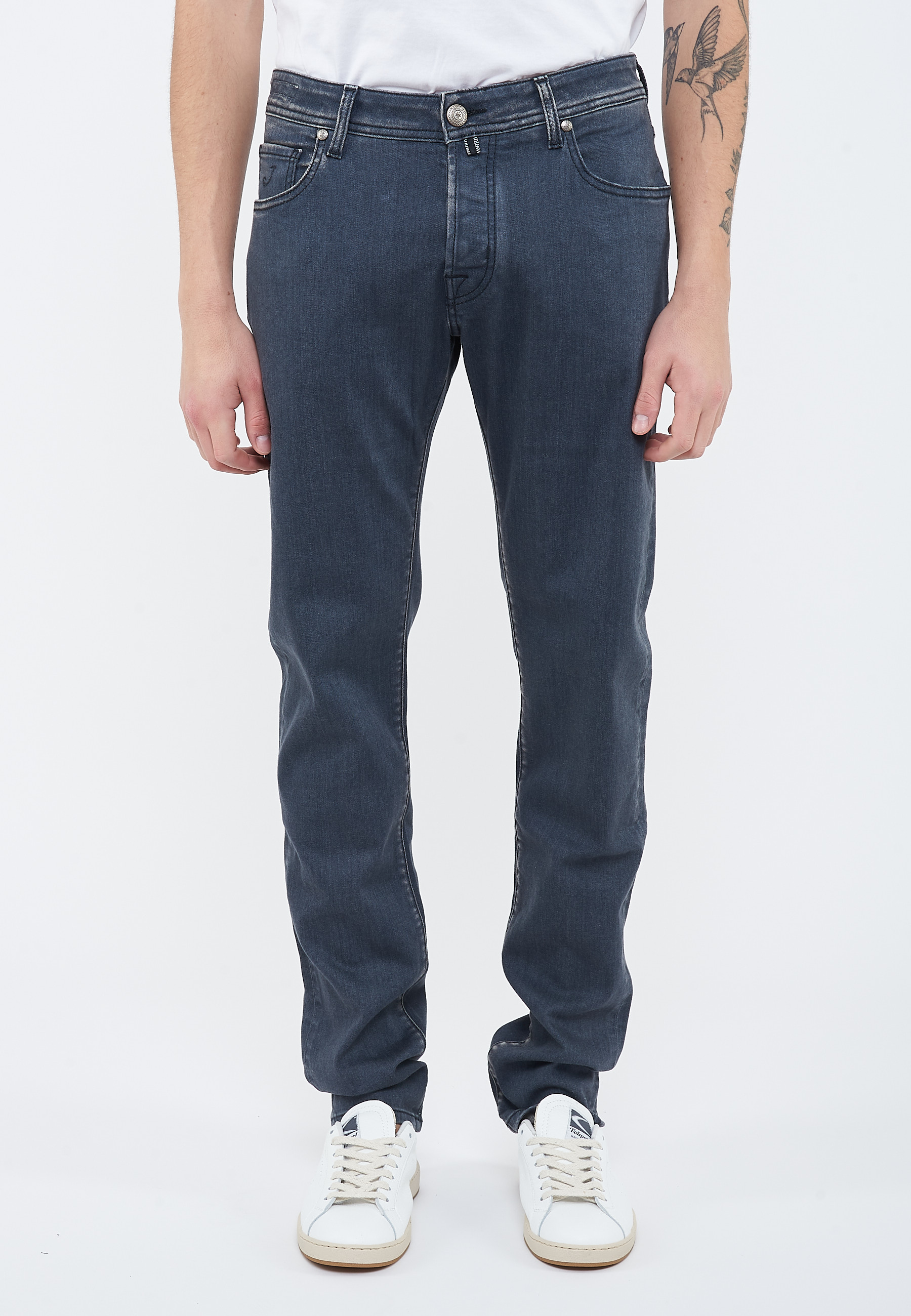 Jeans 5 tasche Nick slim in denim super stretch grigio scuro lavaggio stone