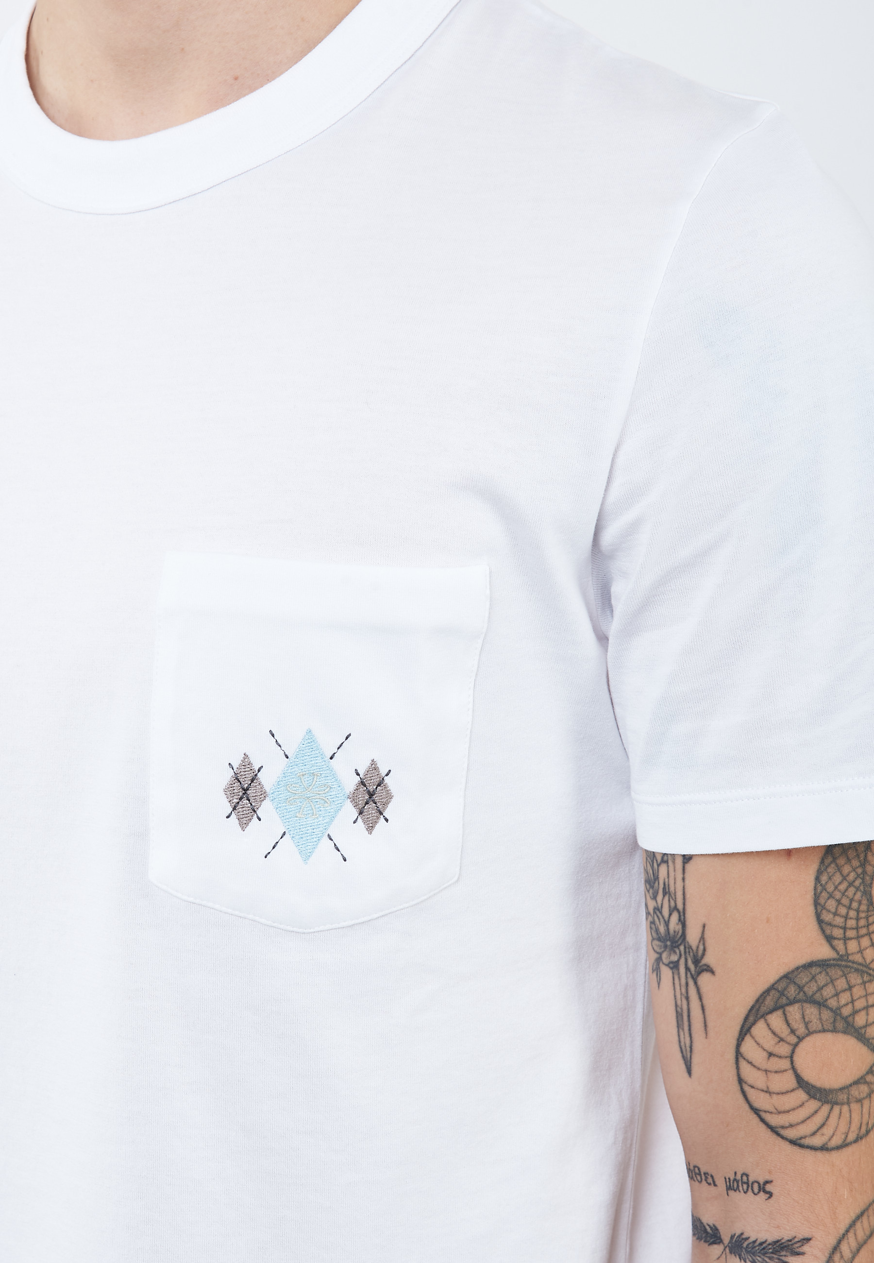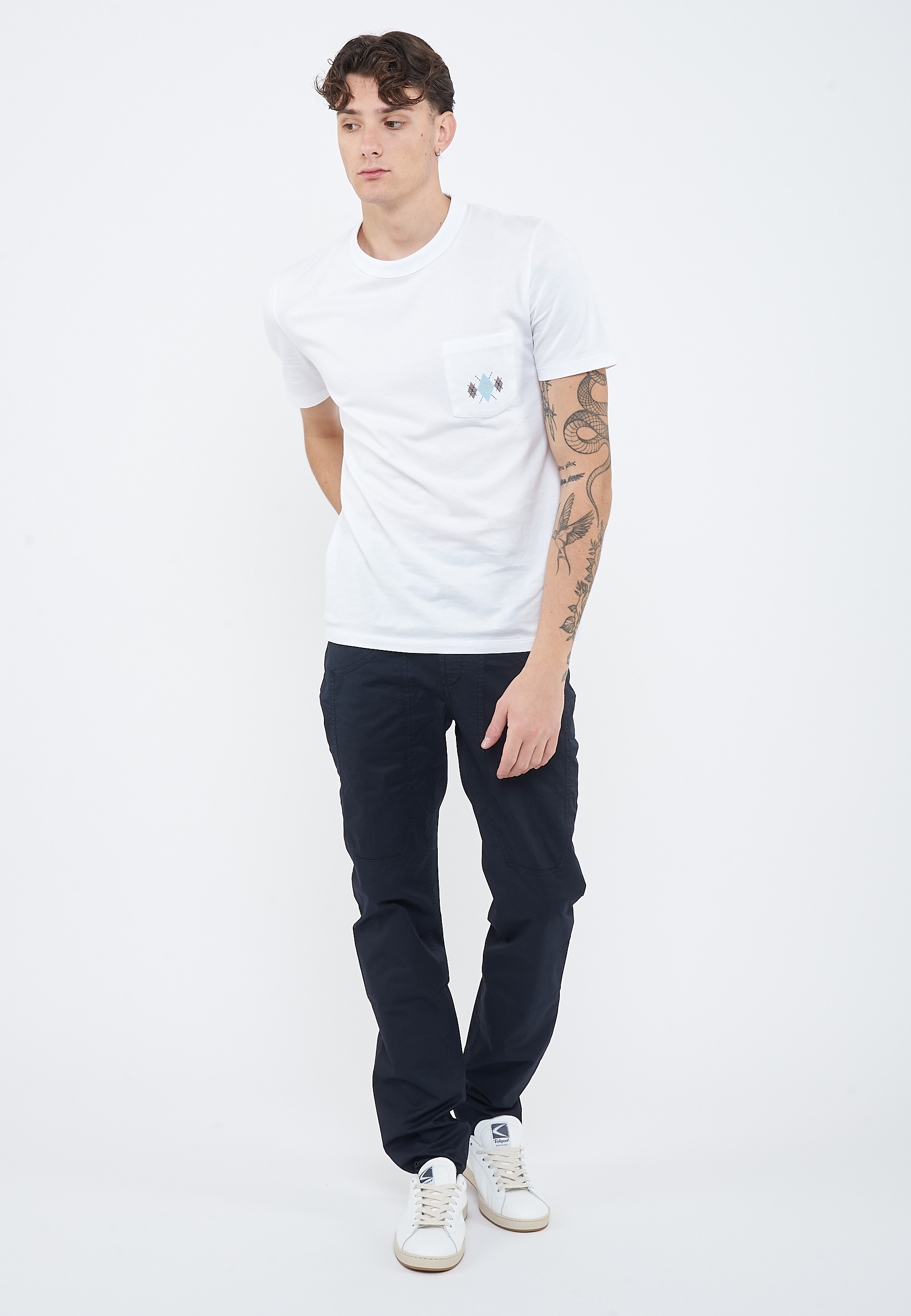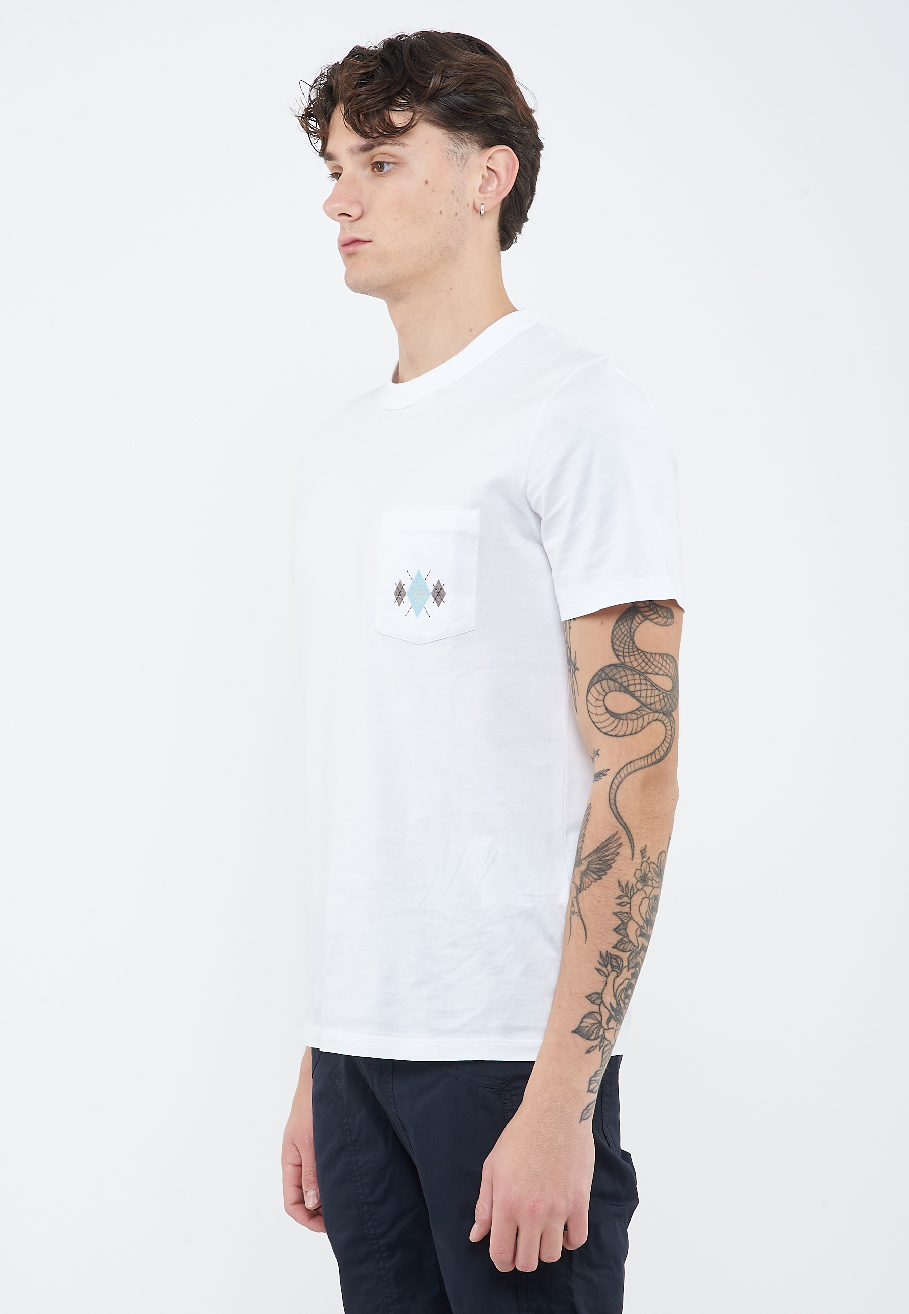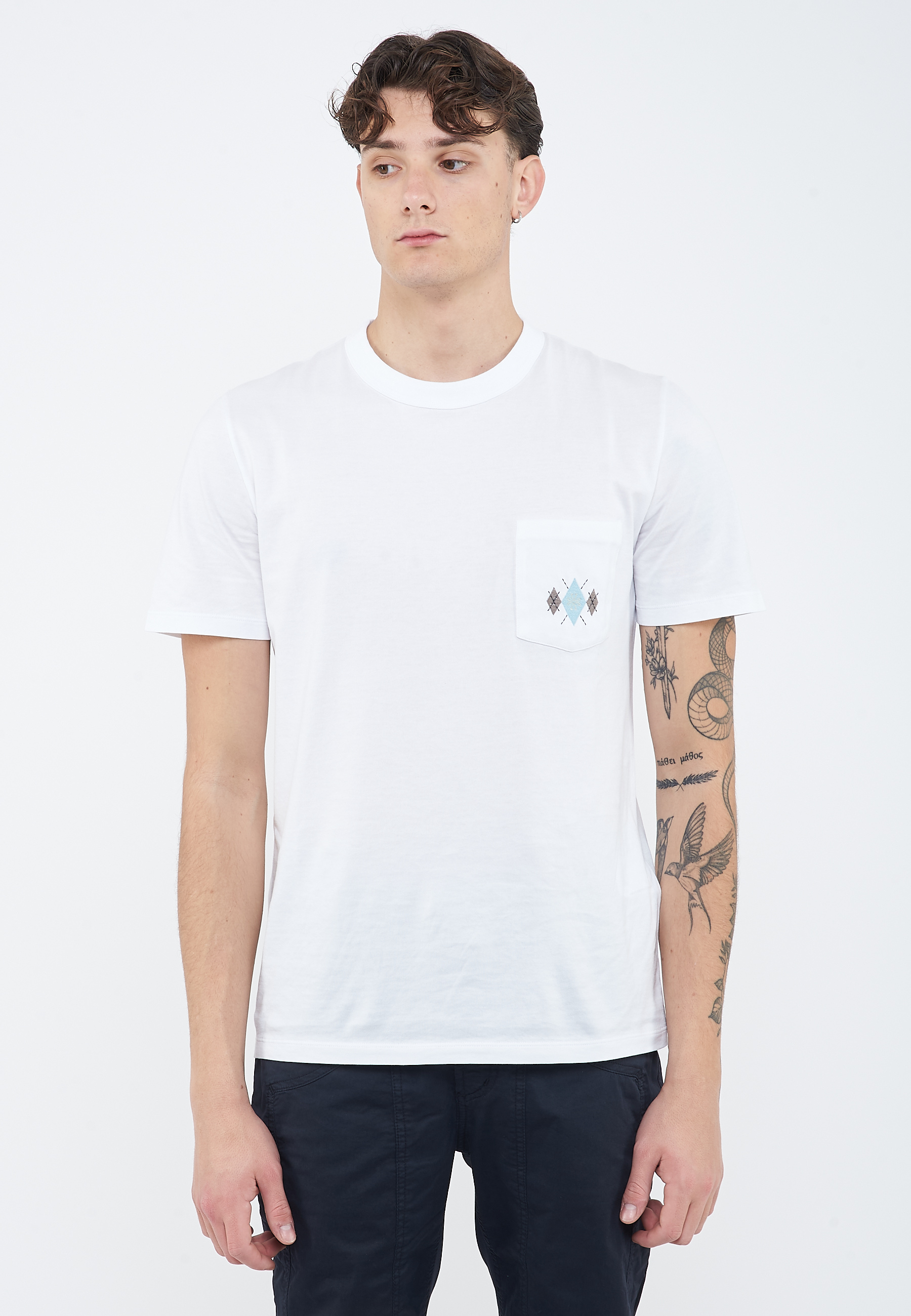 T-shirt girocollo con taschino in jersey di cotone bianco