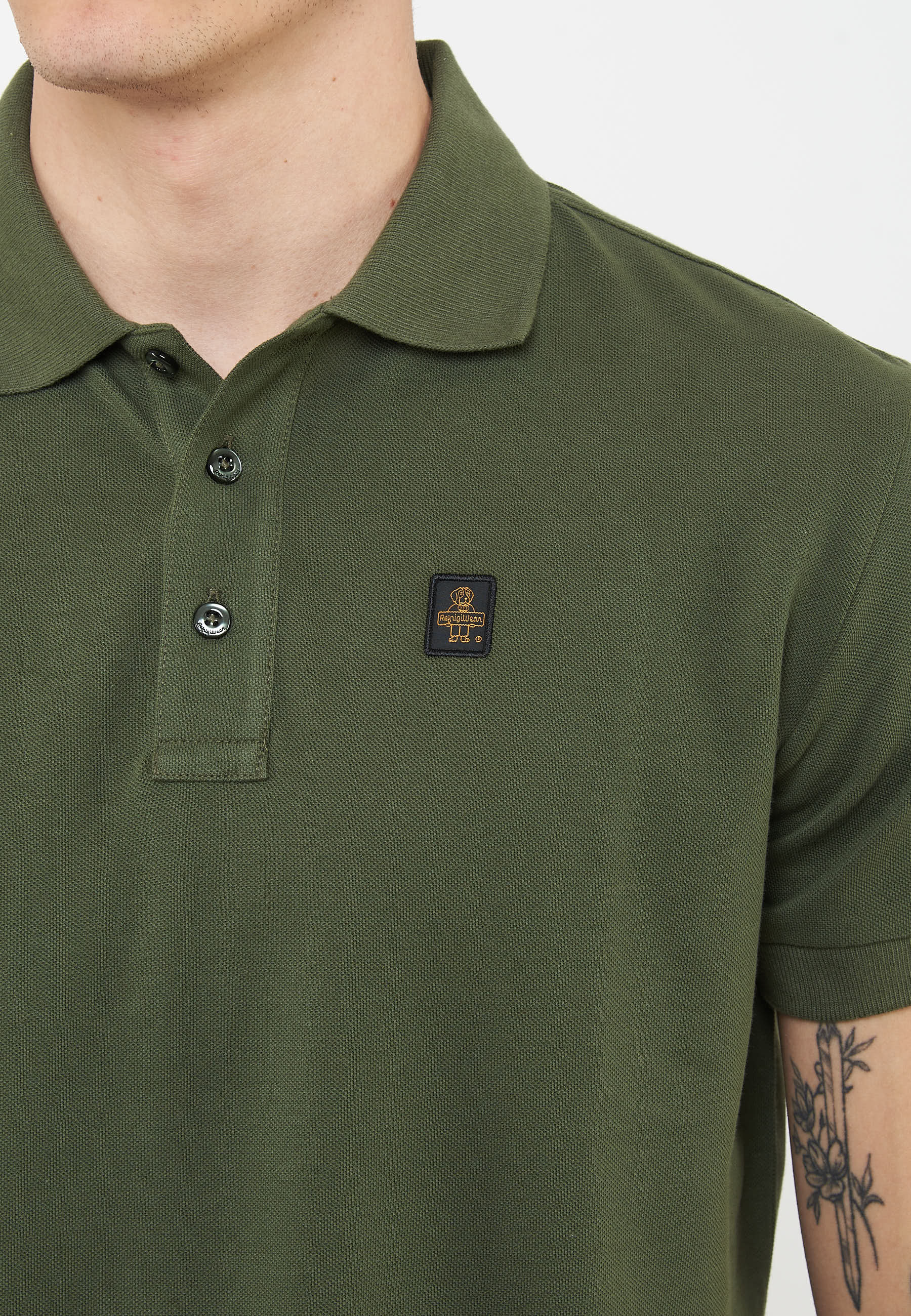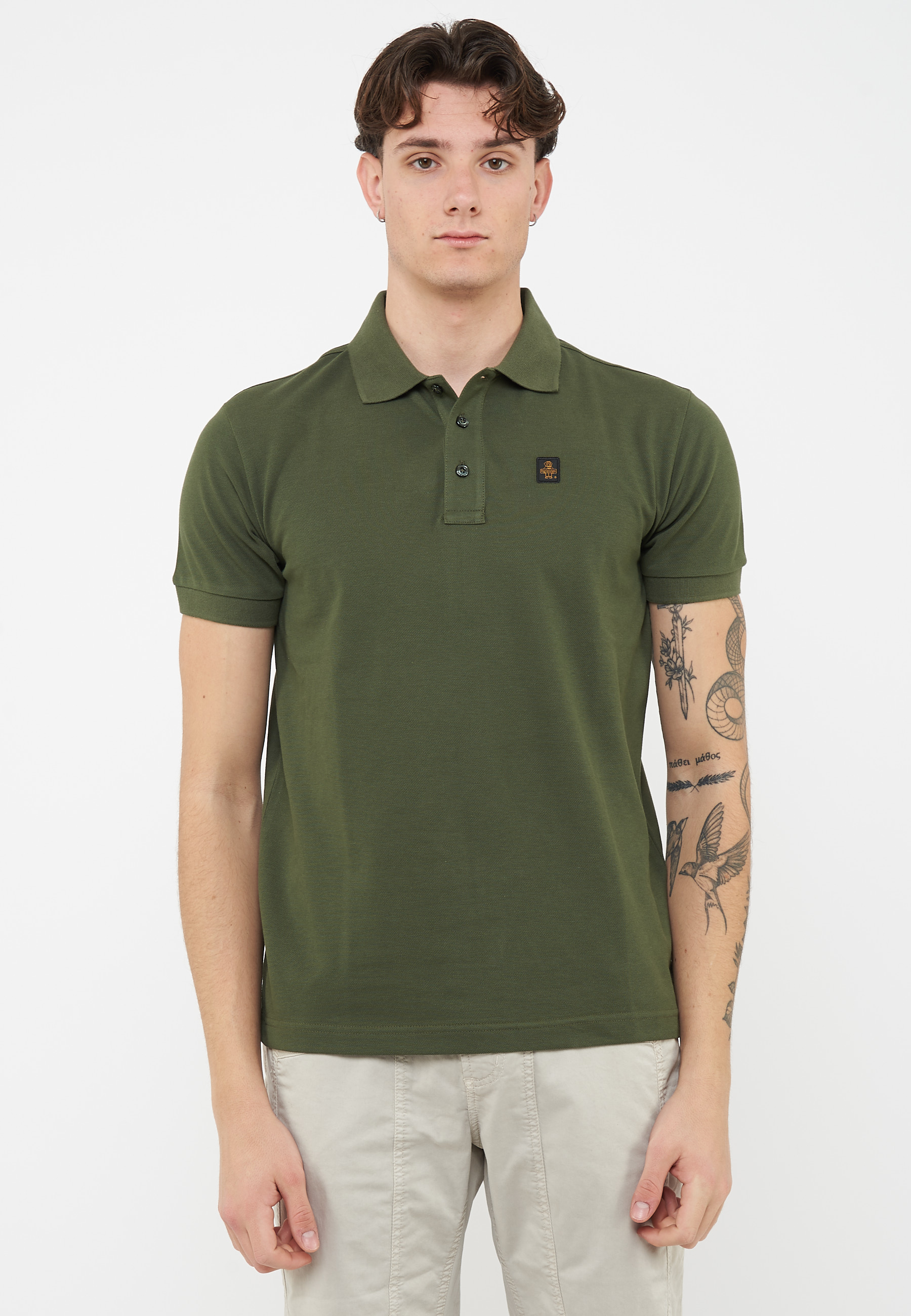 Polo basica tinta unita con logo patch ricamato sul petto. Aspetto semplice ma ricercato, composizione in 100% cotone traspirante e piacevole al tocco.