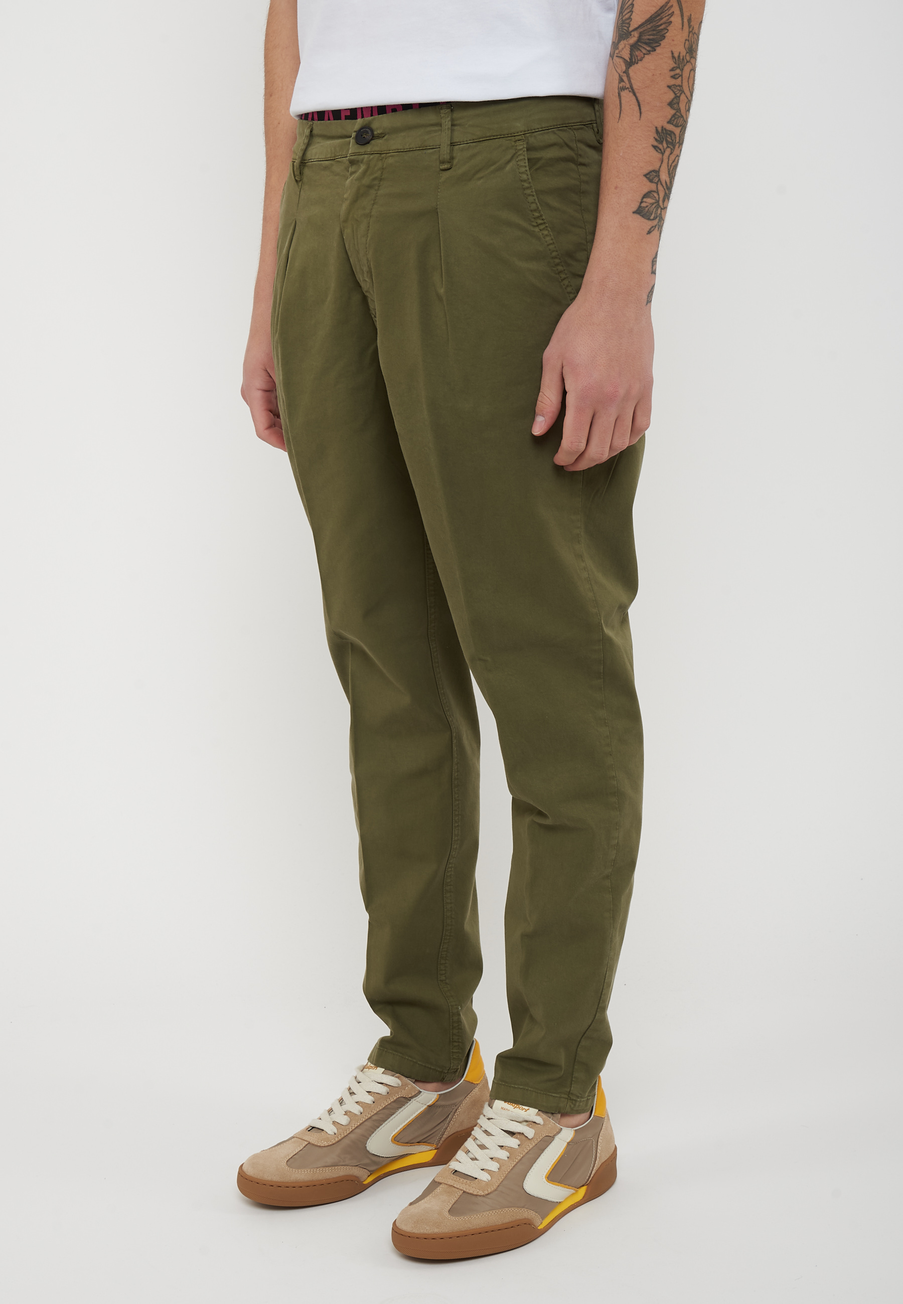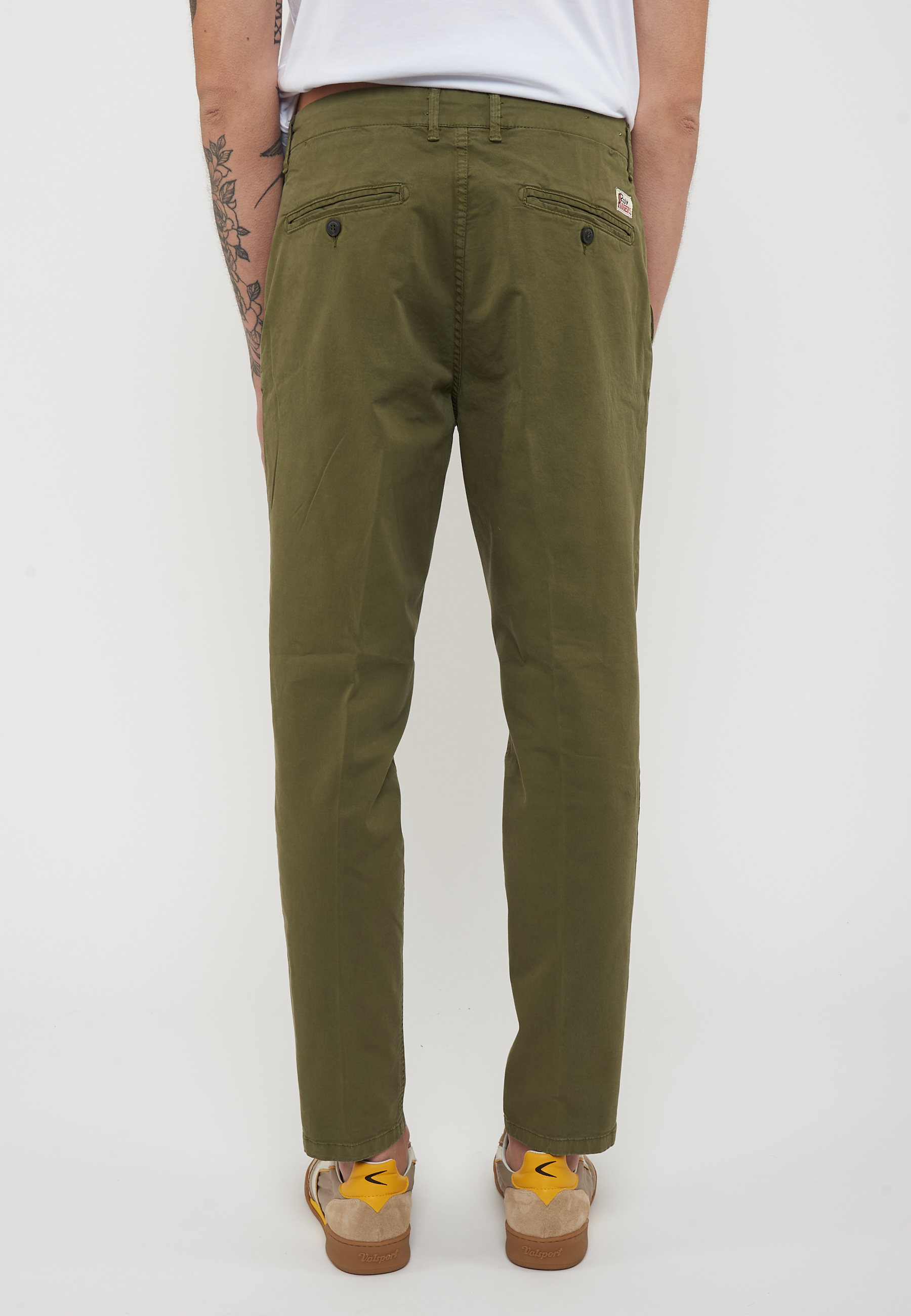 Pantalone chino in gabardina tinta unita.