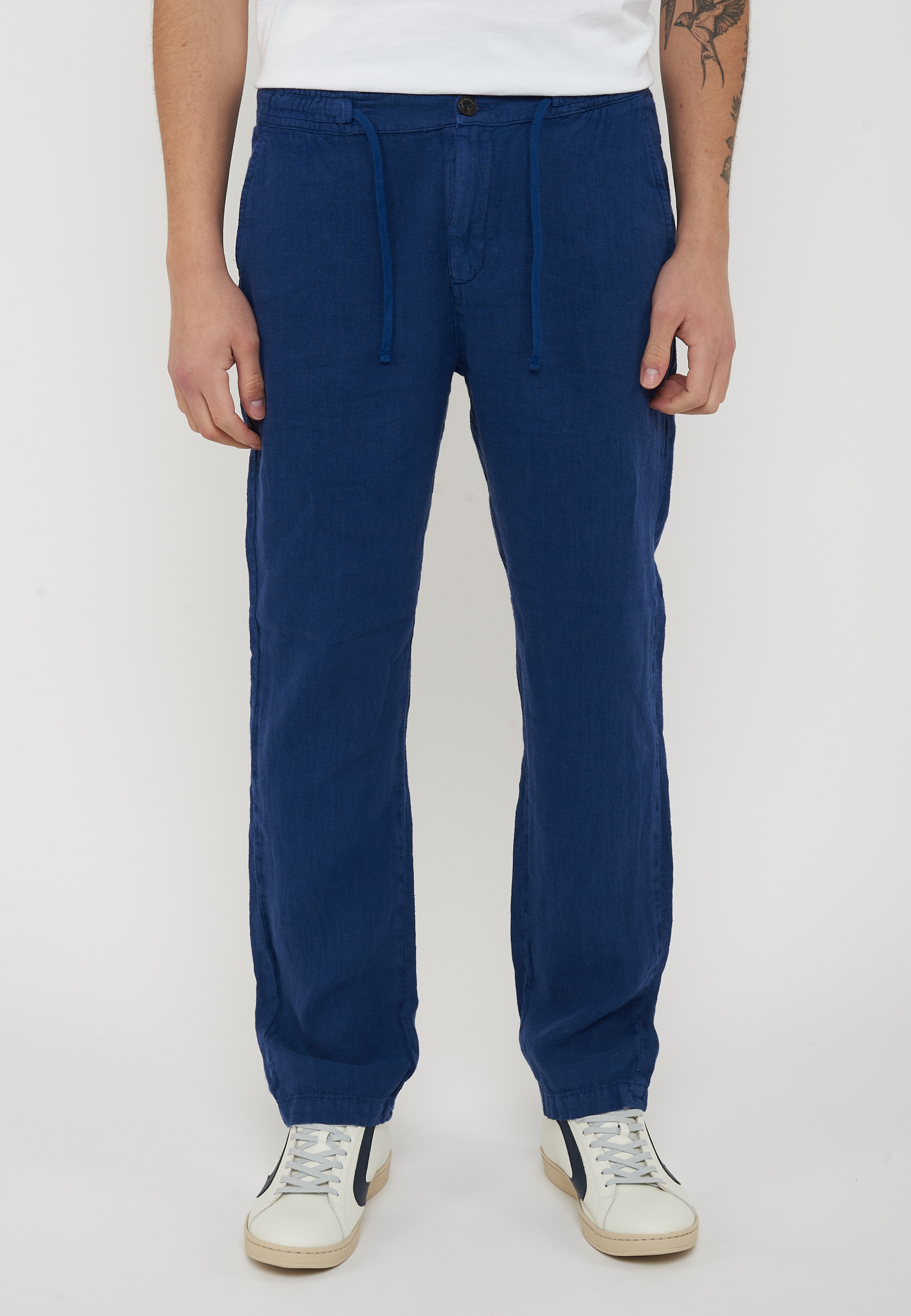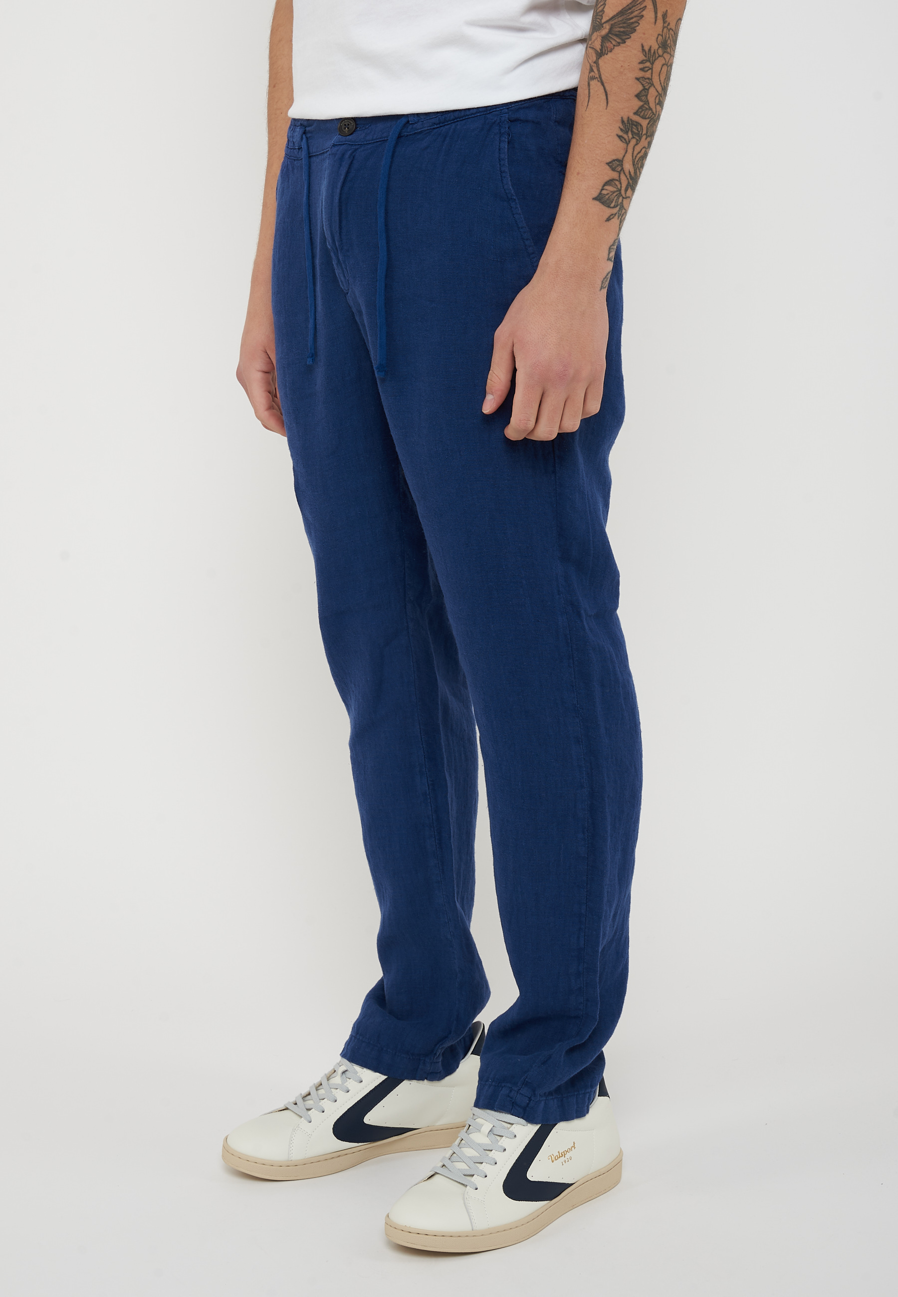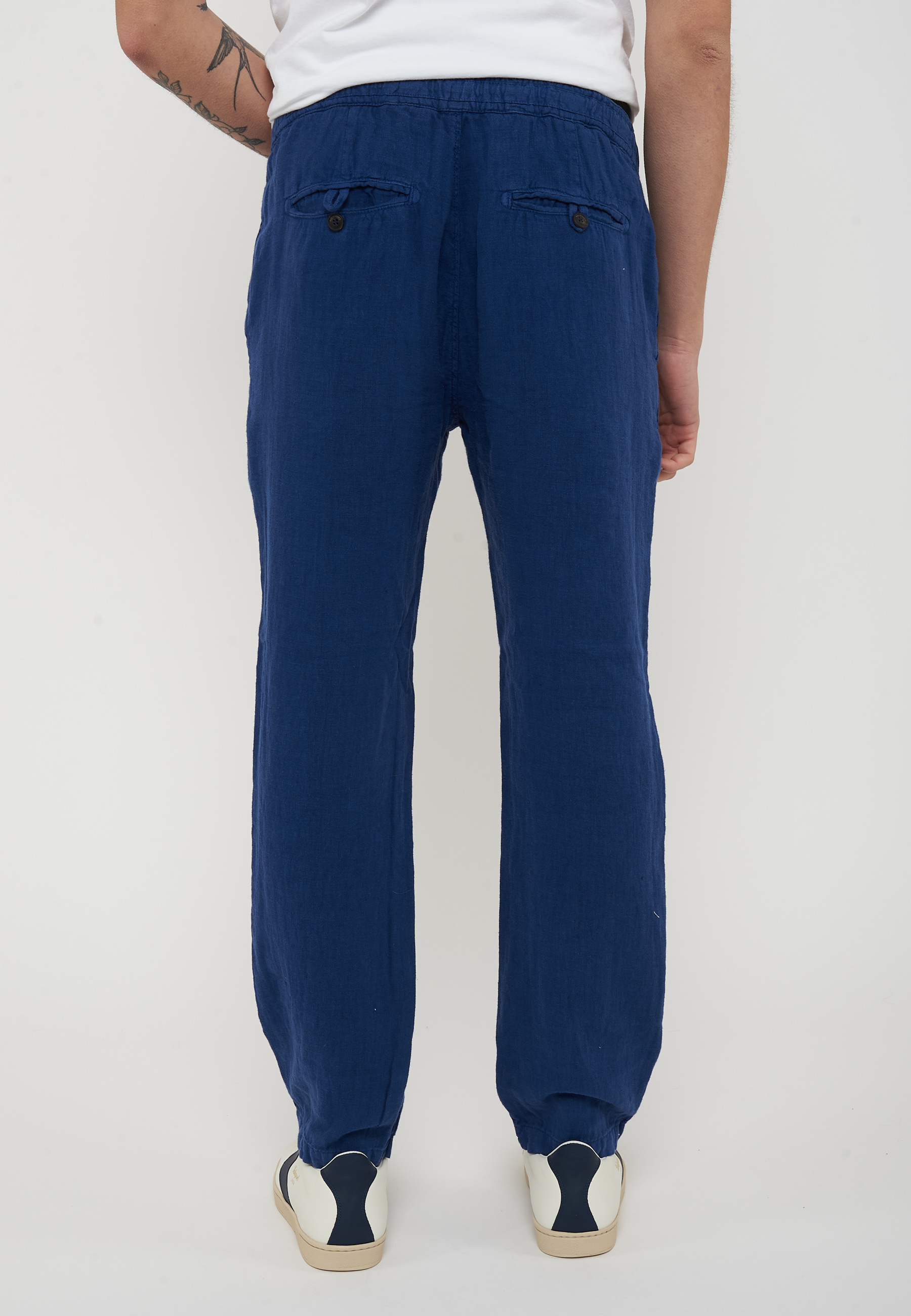 Pantalone chino in lino heavy dyed tinta unita.