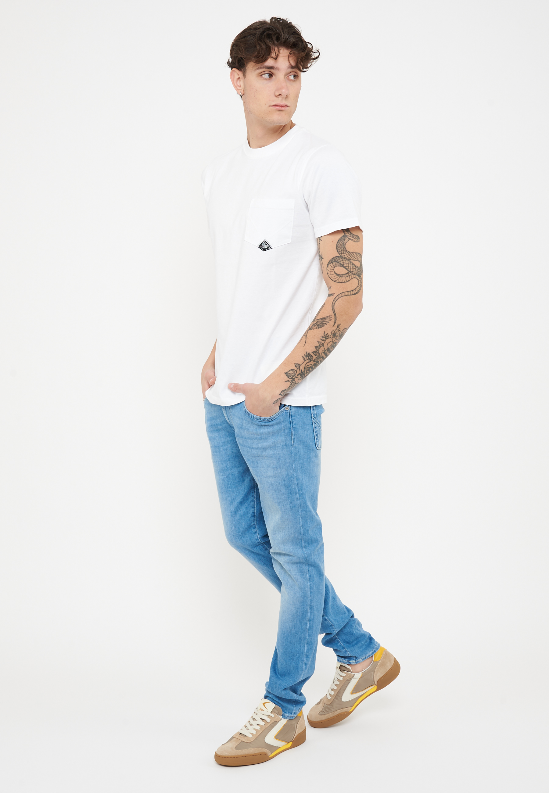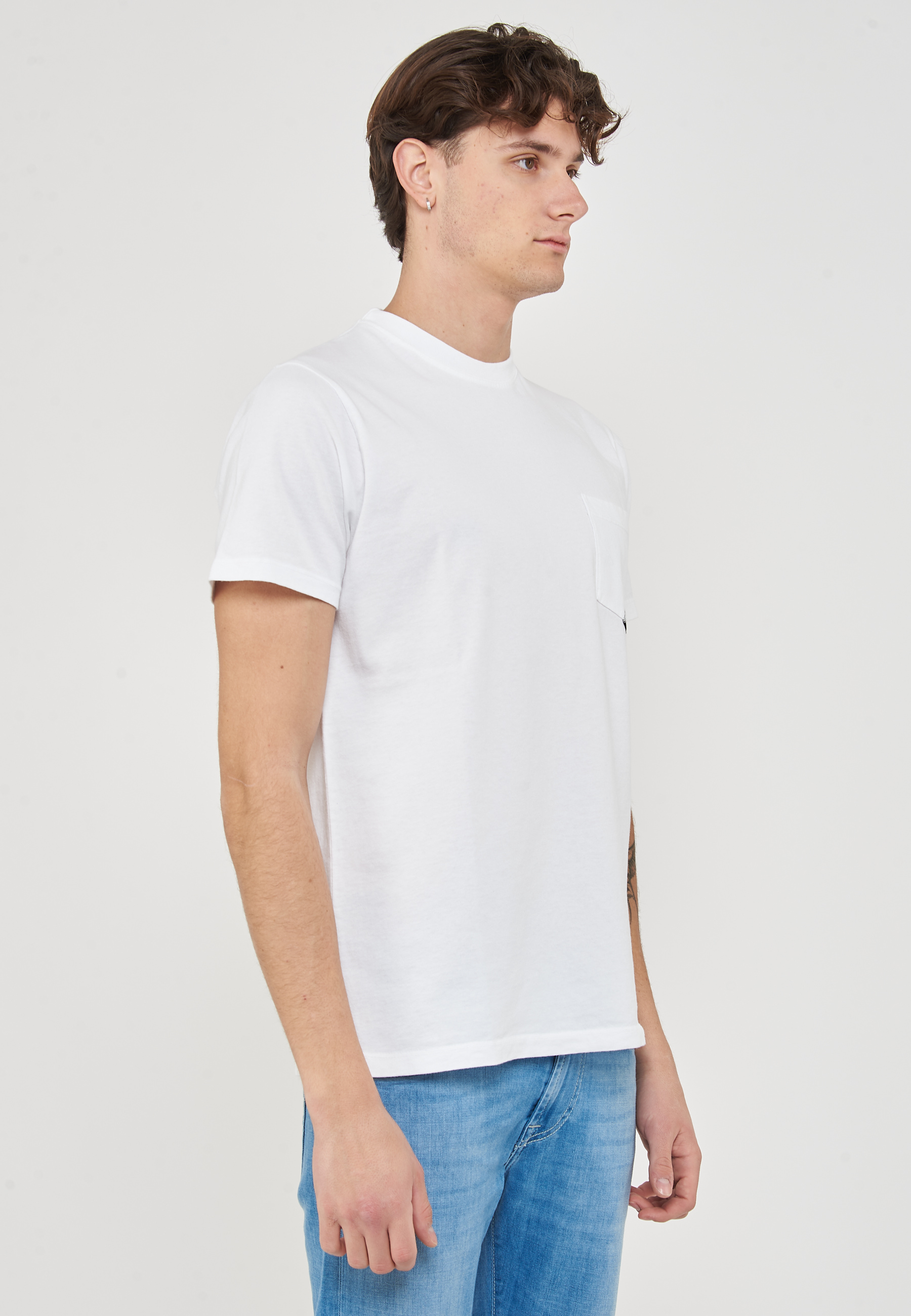 T-shirt girocollo in jersey tinta unita.Maniche corte.Tasca piatta sul petto con label Roy Roger's applicata.Regular fit.