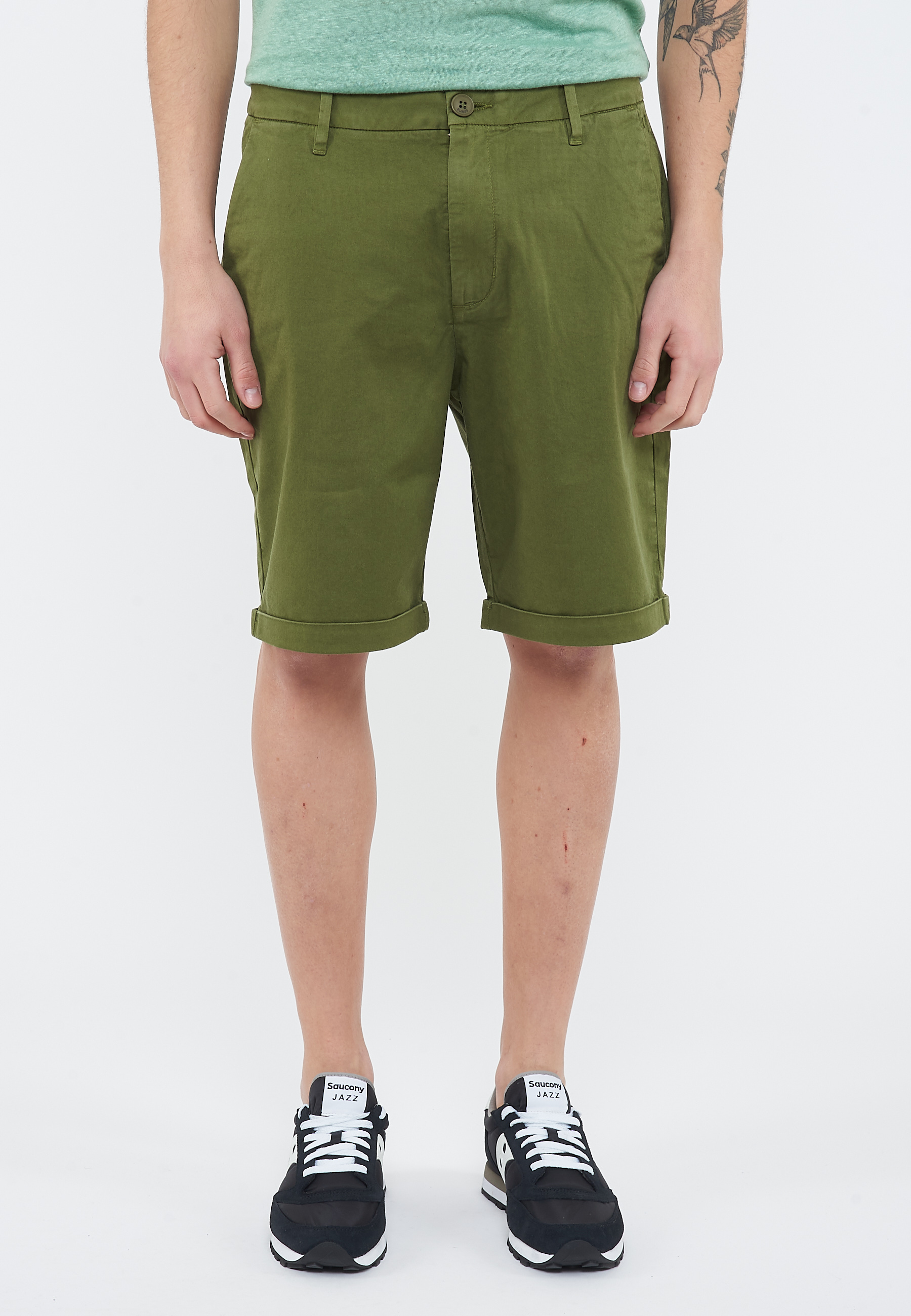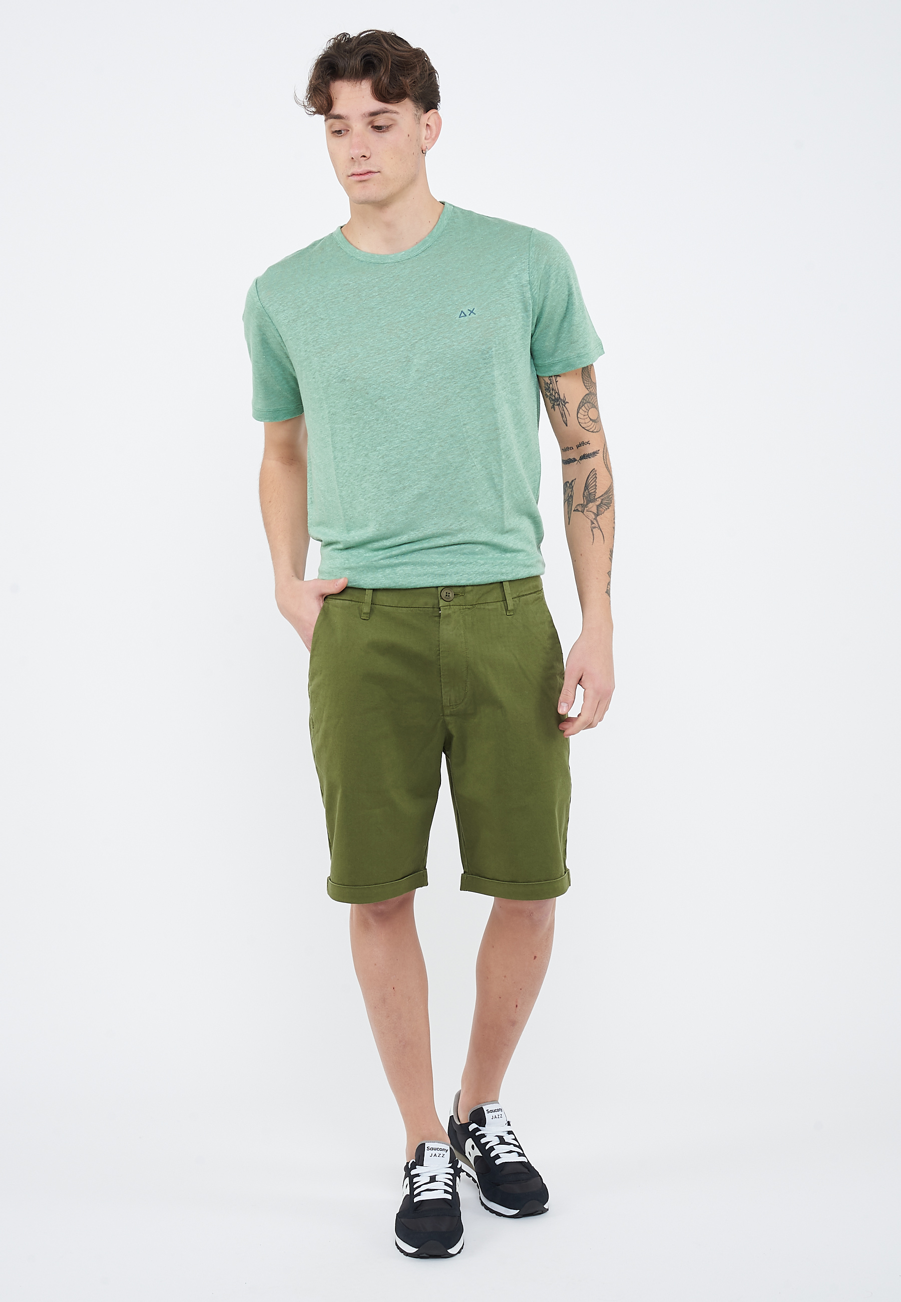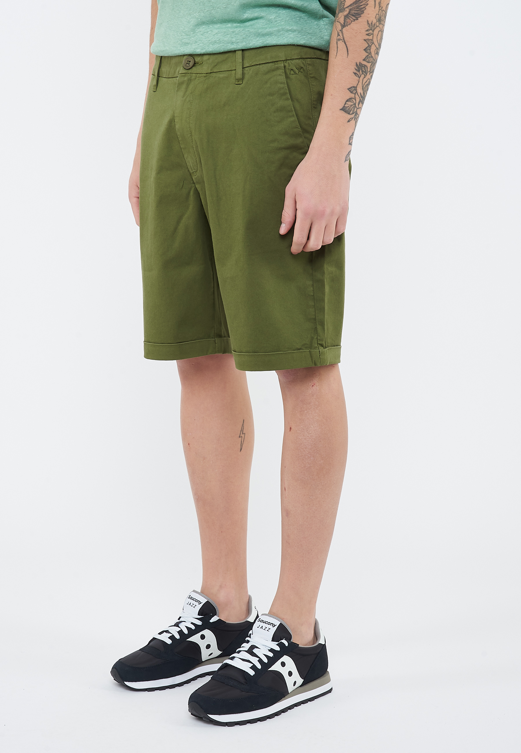 Bermuda chino in cotoneTasche sui fianchi e sul retroRisvolto al fondoChiusura con bottone e zip copertaLogo SUN68 ricamato sul lato