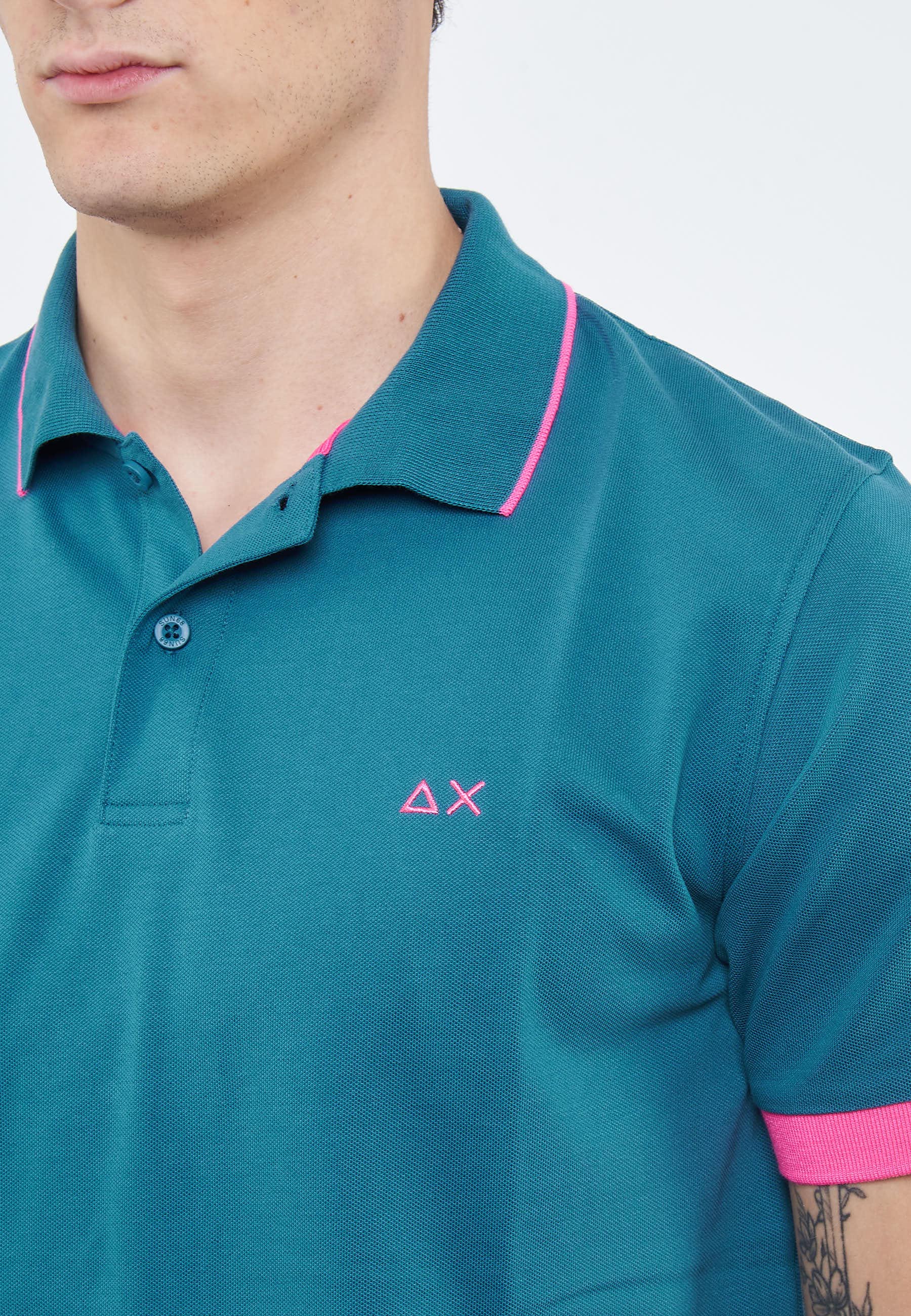 Polo con bordi fluo in cotone avio scuro