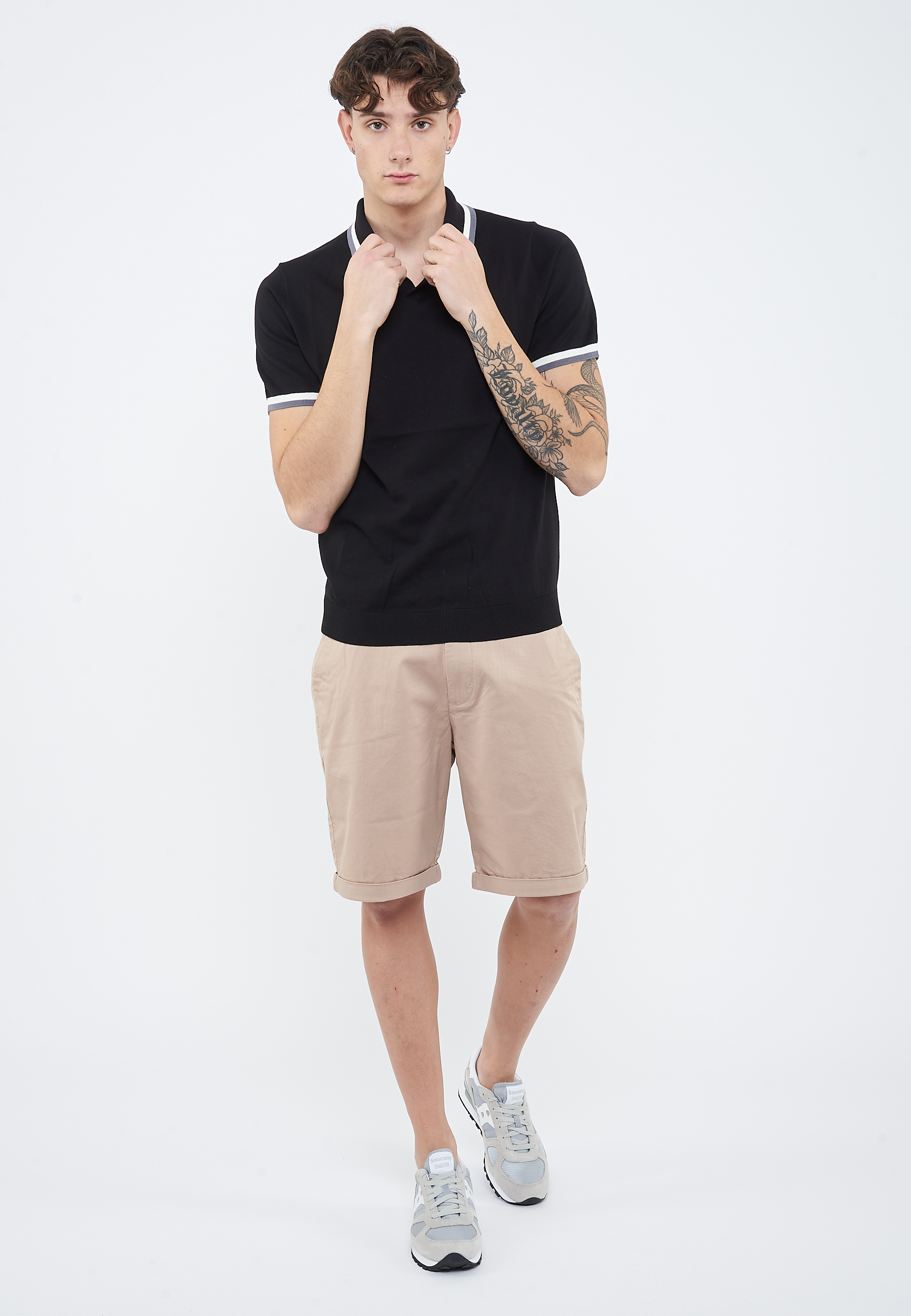 Polo in maglia di cotone nero