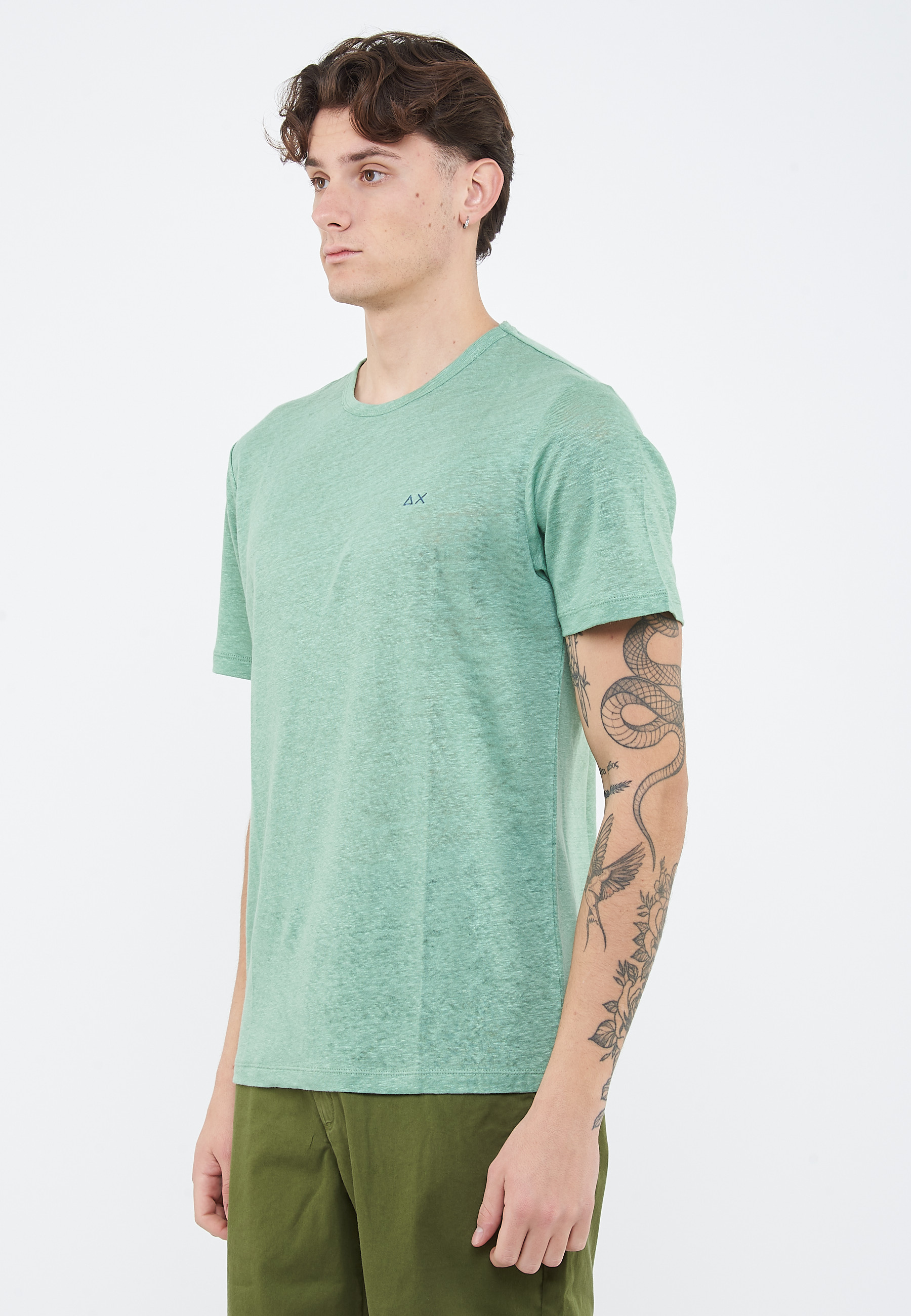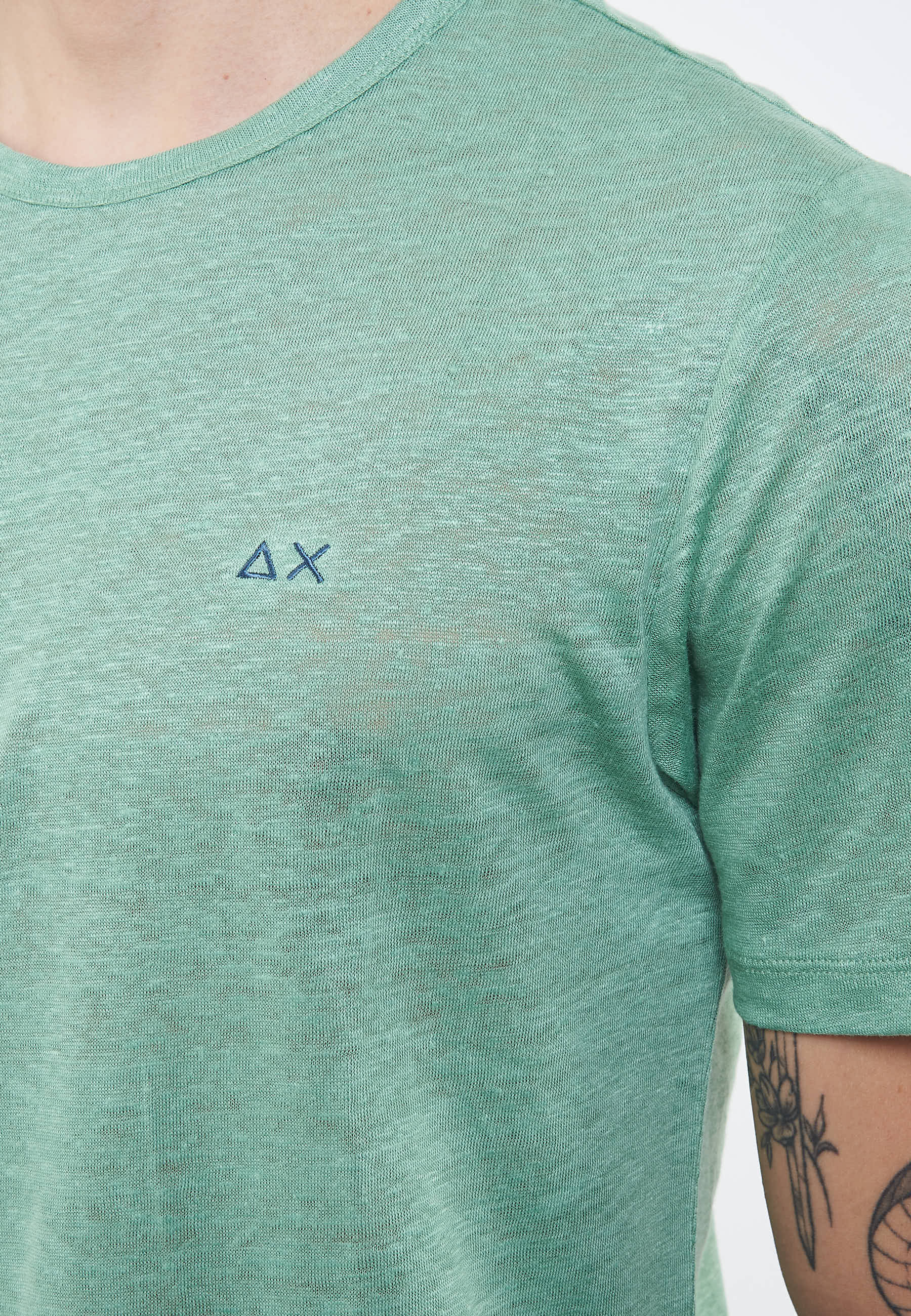T-shirt in jersey di lino verde salvia