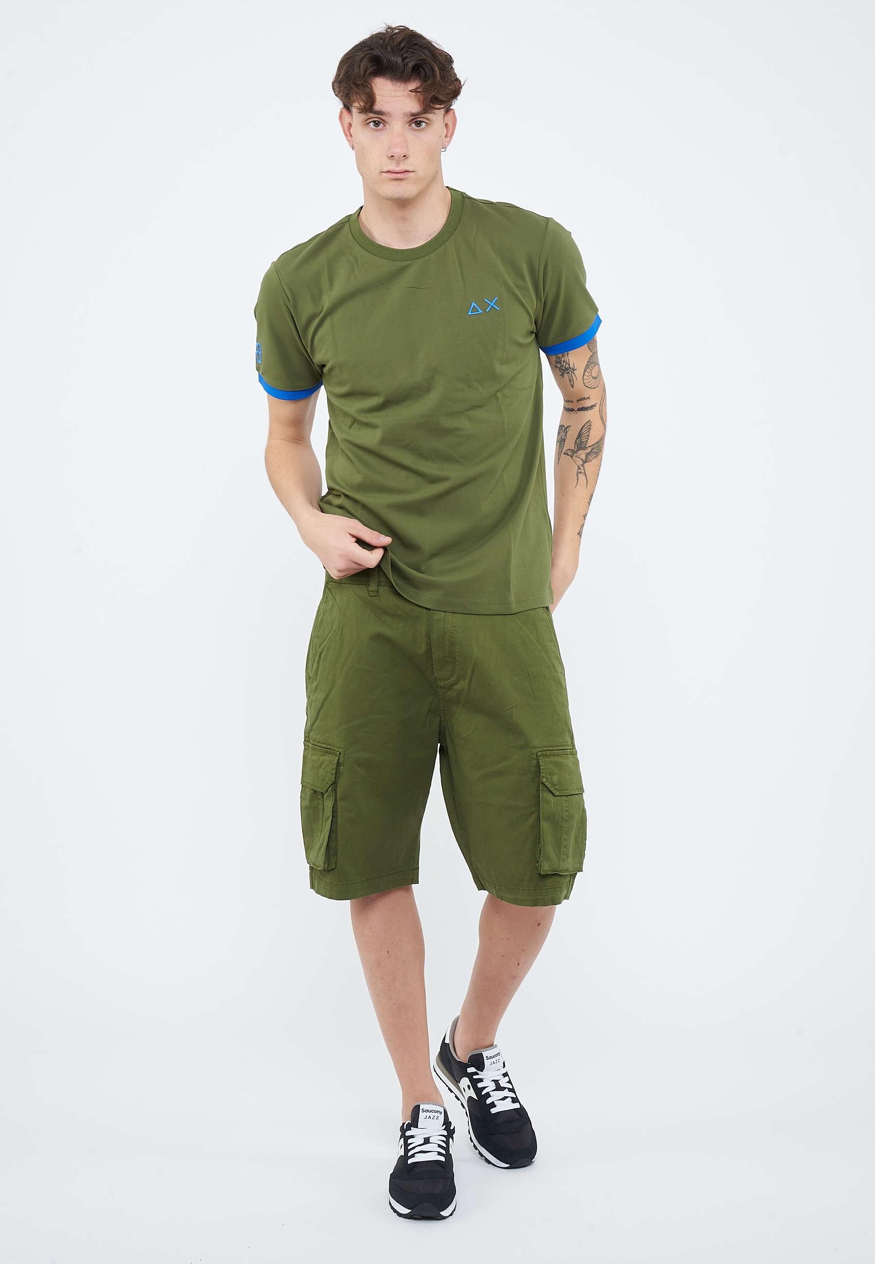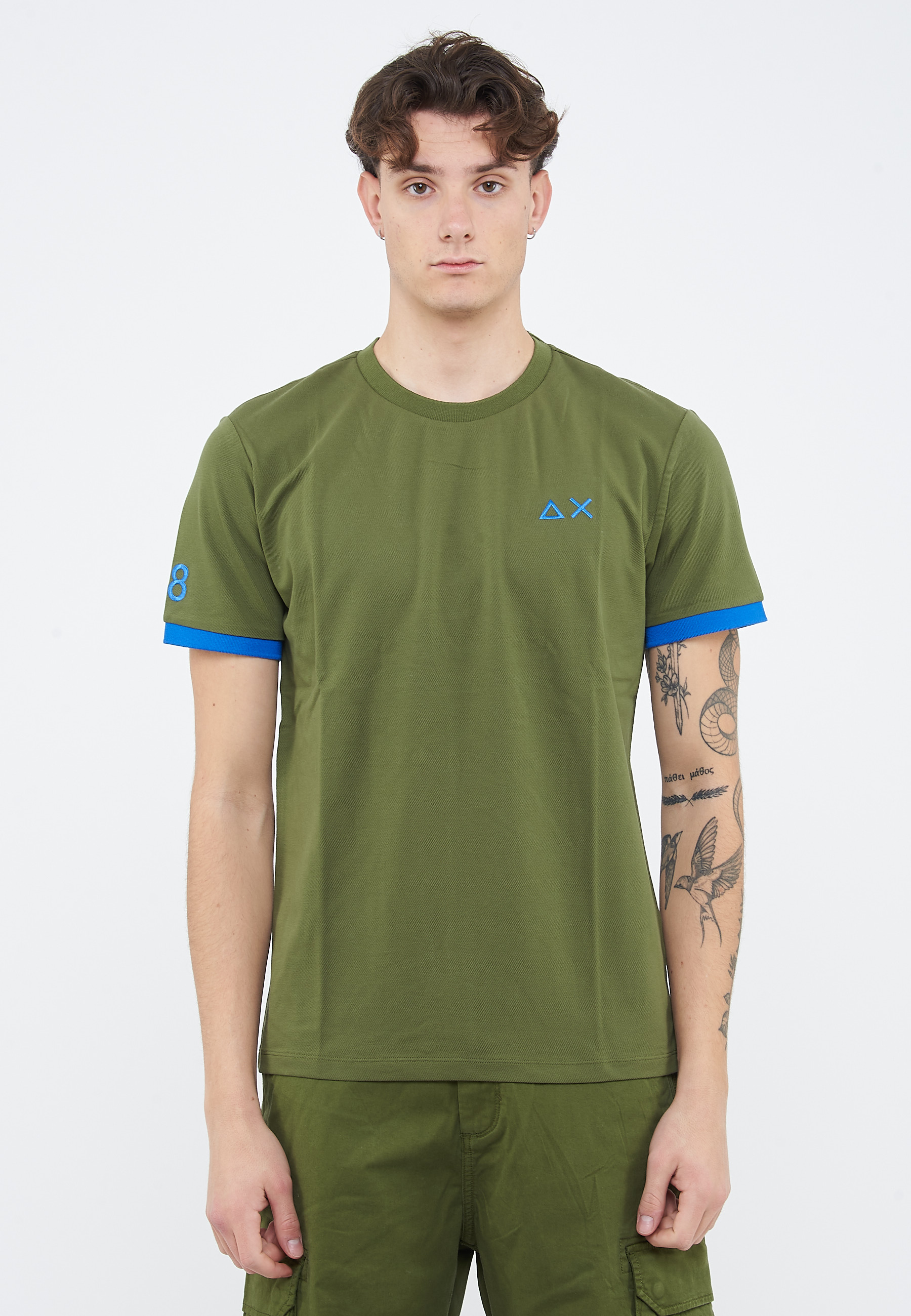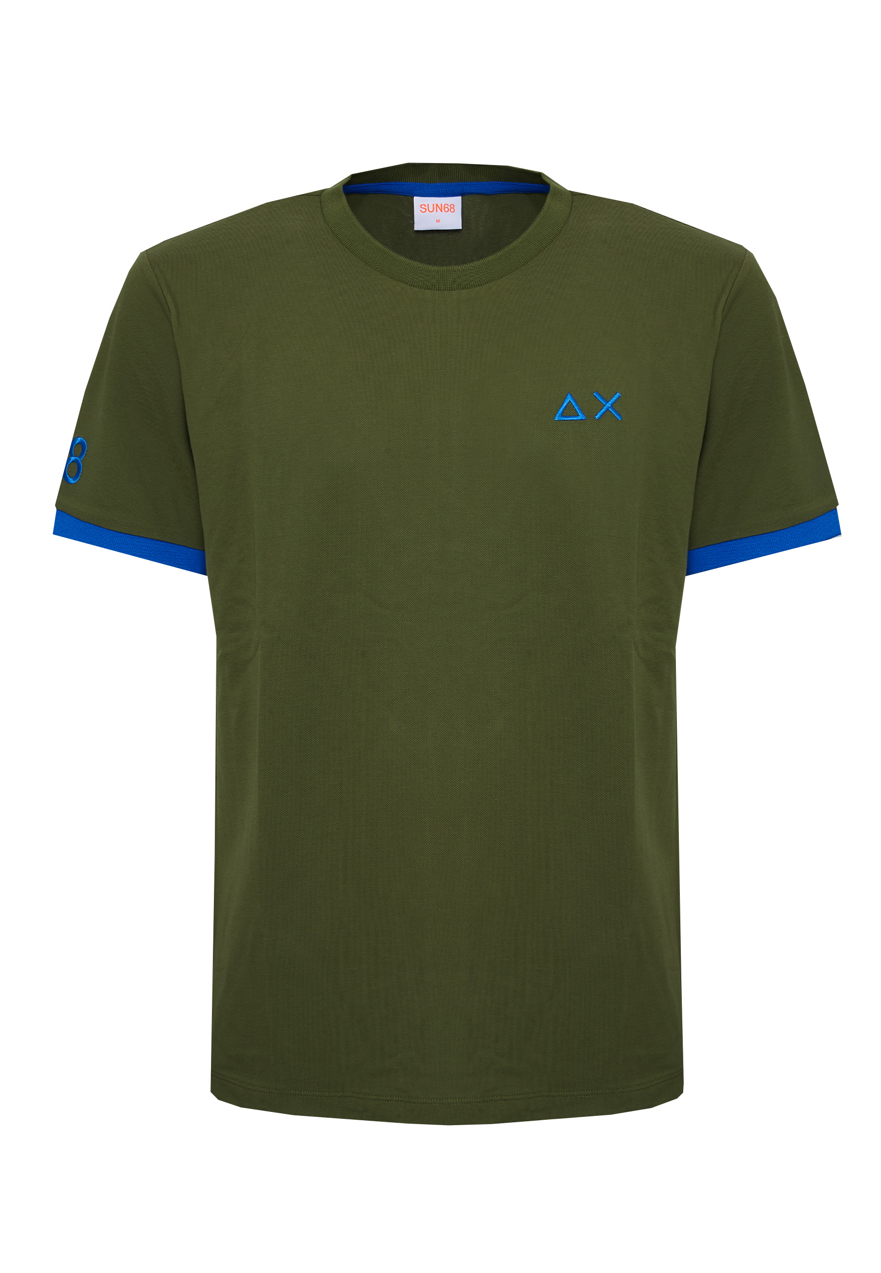 T-shirt in piquet di cotoneGirocolloManiche corte con bordo fluo a contrastoLogo fluo SUN68 stampato sul petto e sulla manica