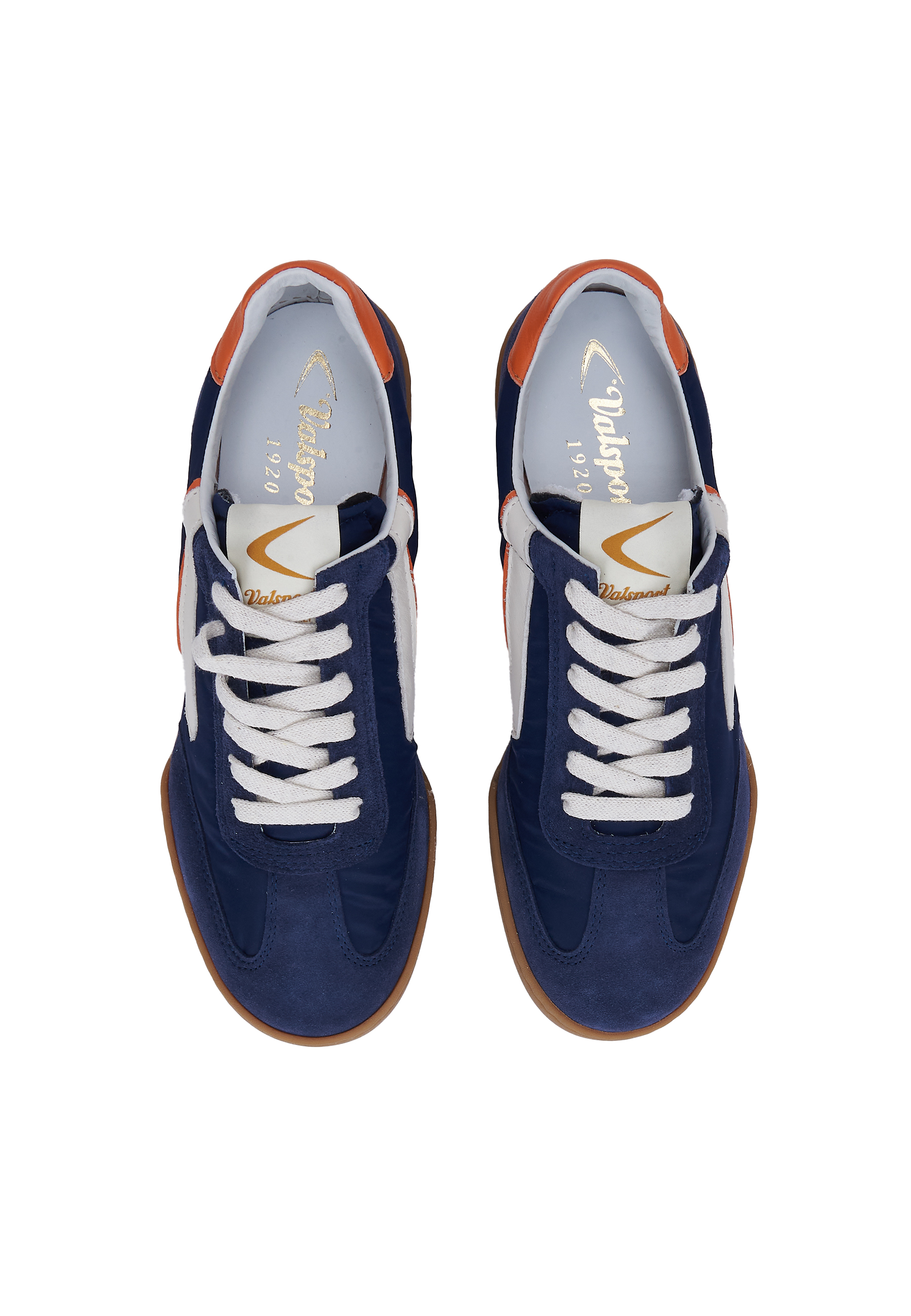Sneakers bassa colorblock ispirata al mondo volley con tomaia in suede e nylon. Iconico boomerang e tallone in contrasto colore. Suola in gomma con logo impresso sul retro. Patch logo applicata sulla linguetta. Soletta in vero cuoio non estraibile. 100% Made in Italy.